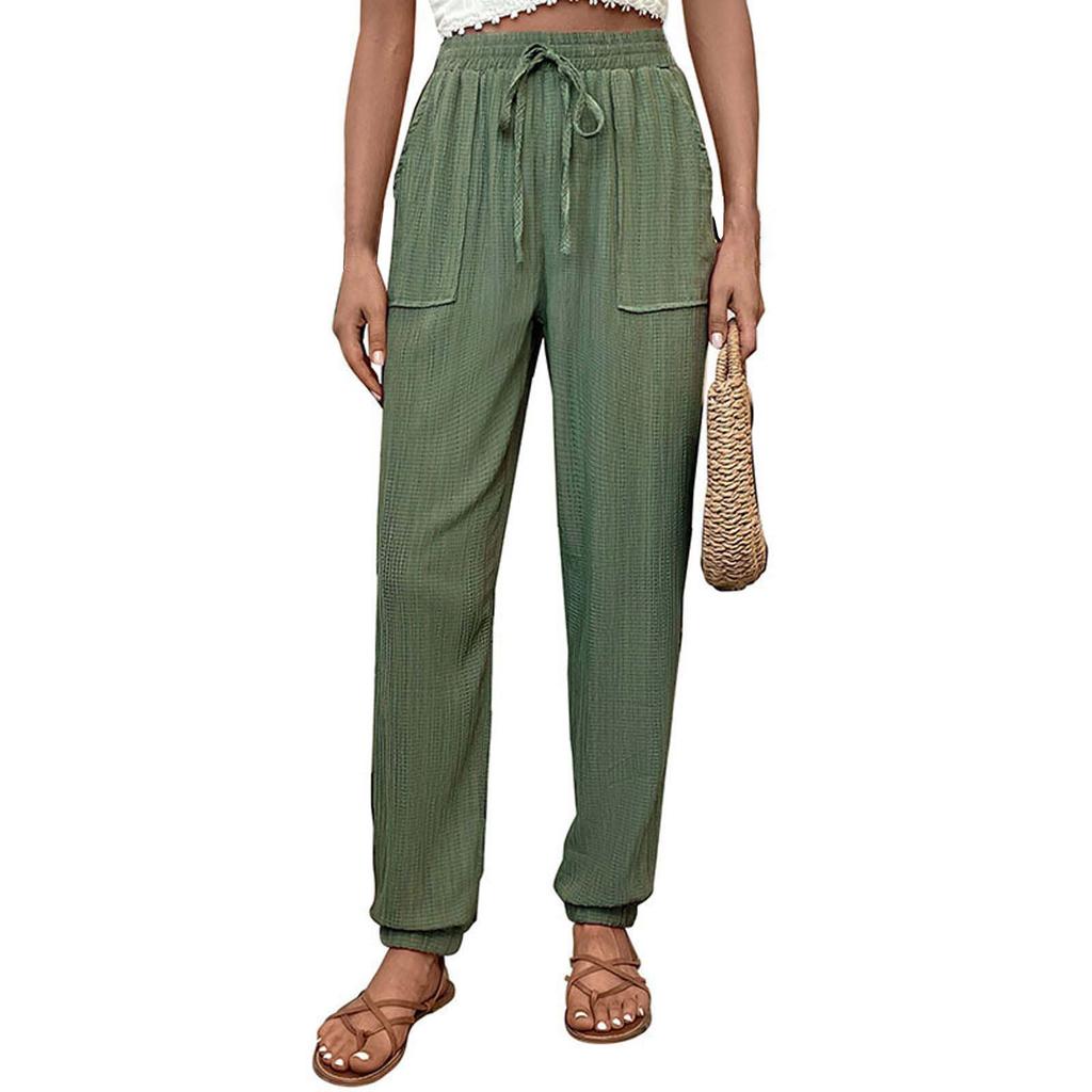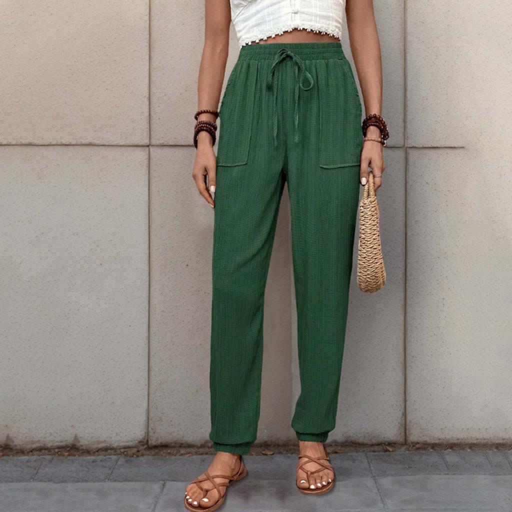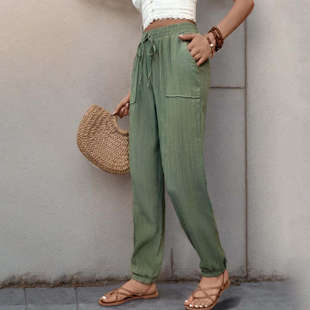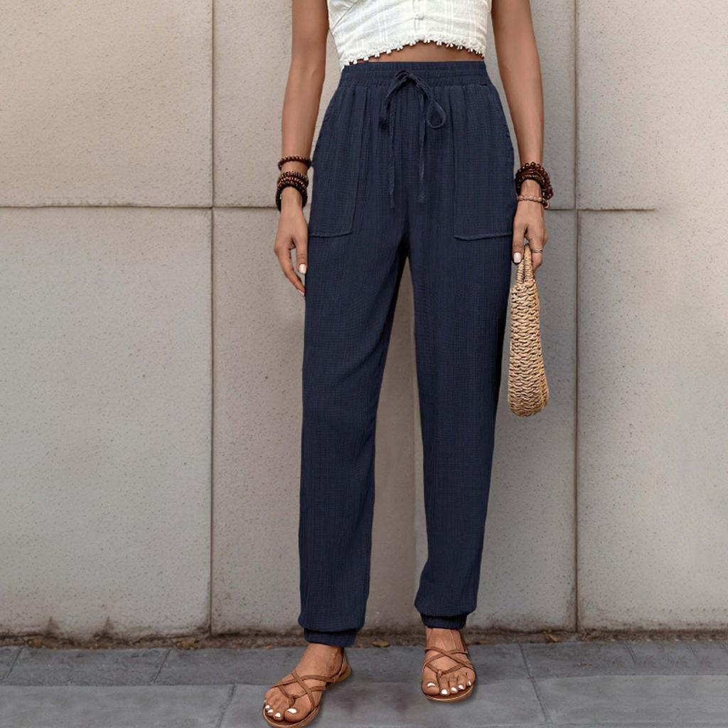 Женские повседневные брюки однотонные с эластичным поясом и завязками на шнурке, брюки с карманами