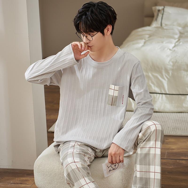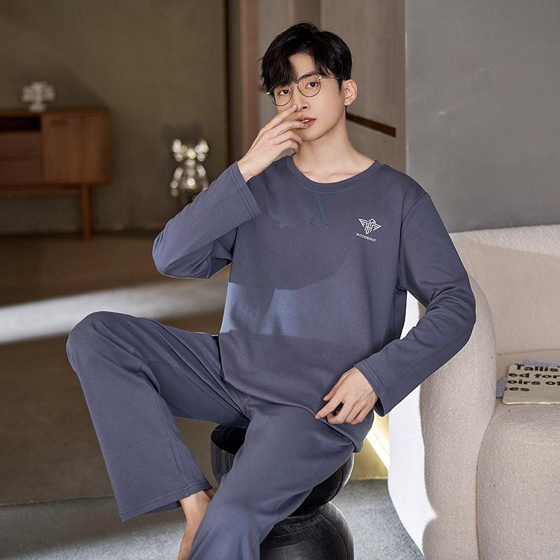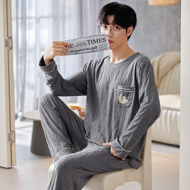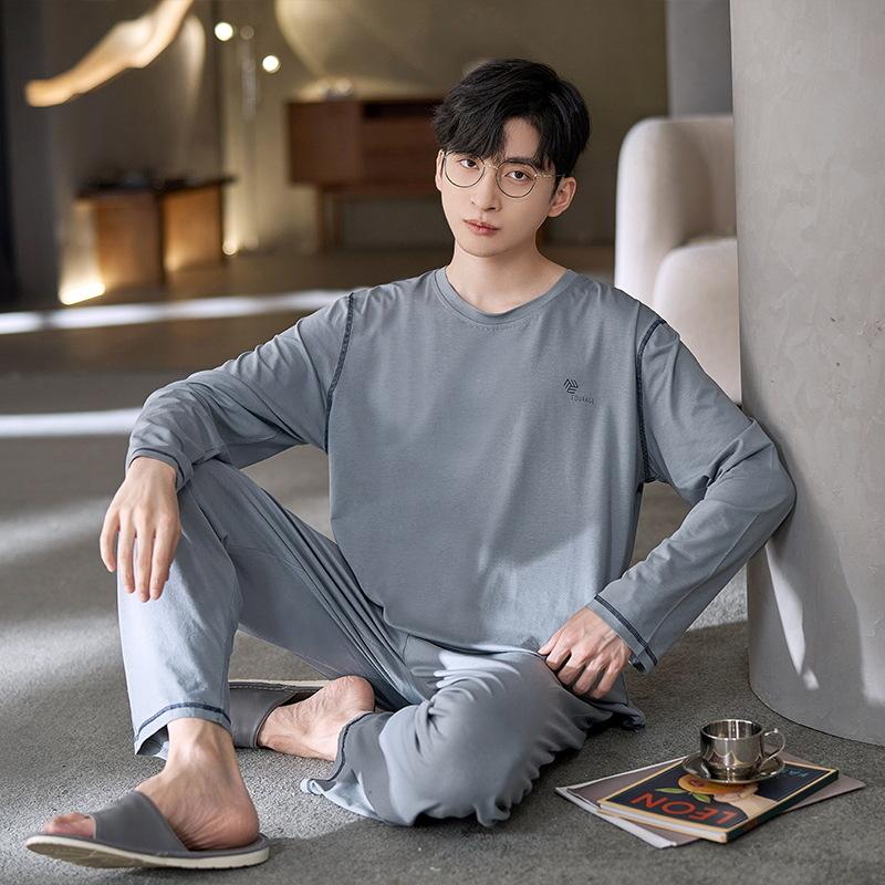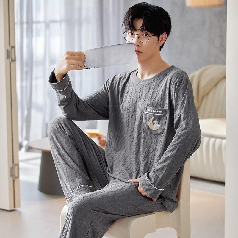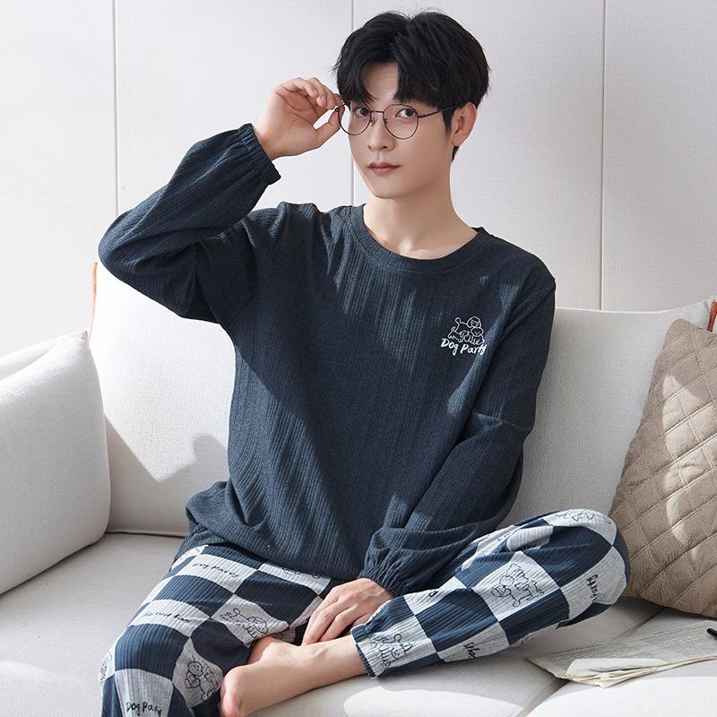 Хлопок Осень Тонкий Мужской Пижамный Комплект Длинный Пижамный Топ Брюки Пижамный Костюм Мужской Домашний Костюм Домашняя Одежда Повседневная Пижама