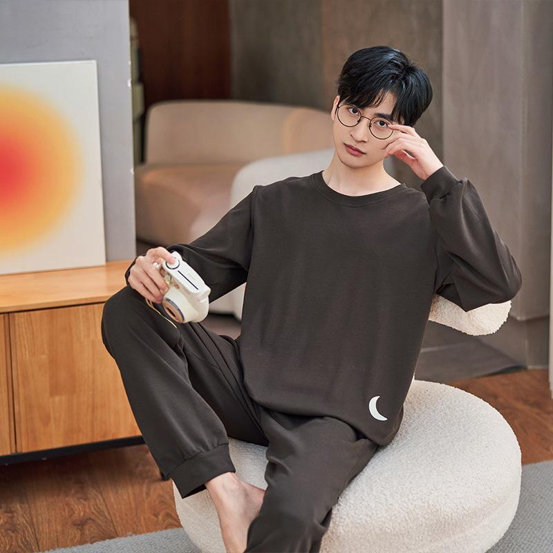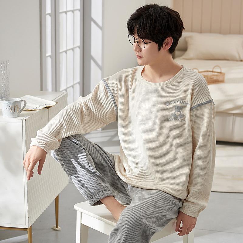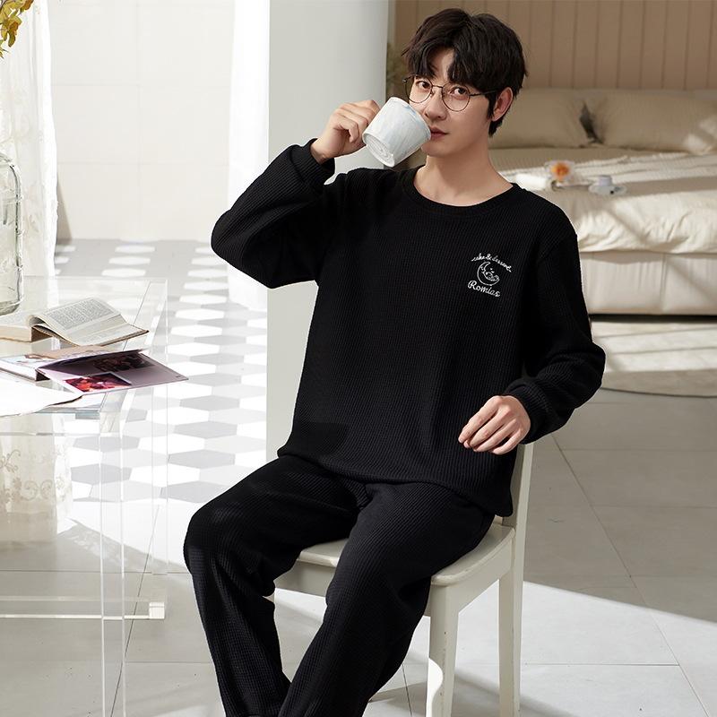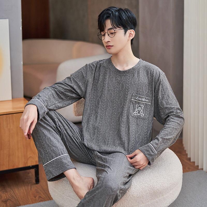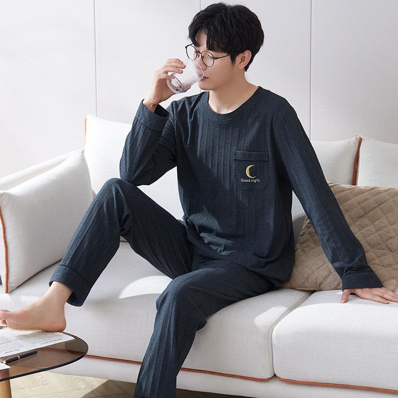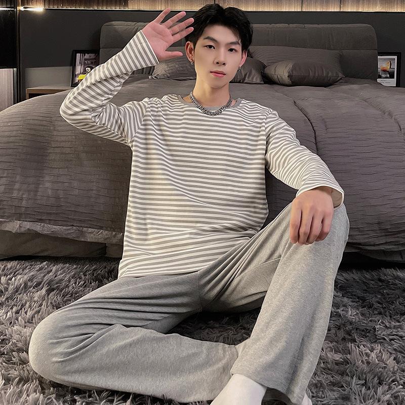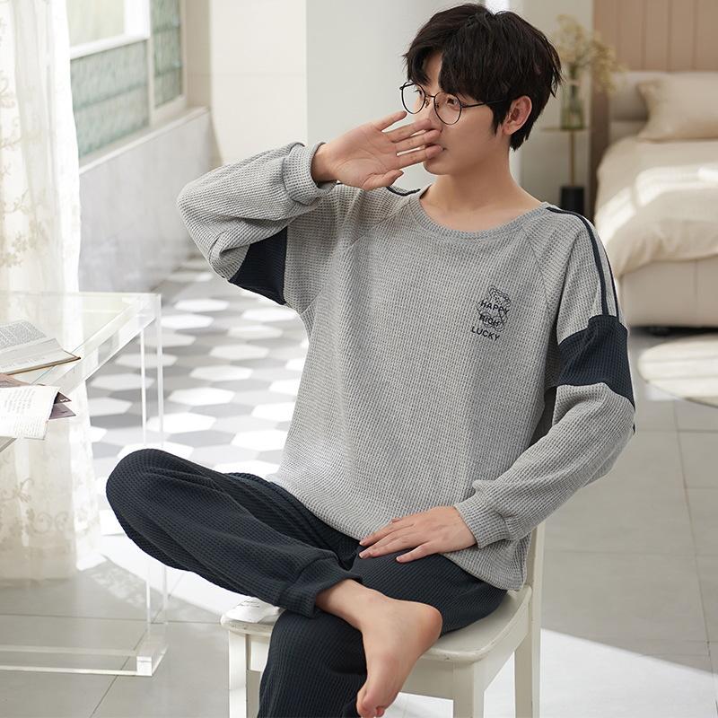 Хлопок Осень Тонкий Мужской Пижамный Комплект Длинный Пижамный Топ Брюки Пижамный Костюм Мужской Домашний Костюм Домашняя Одежда Повседневная Пижама