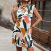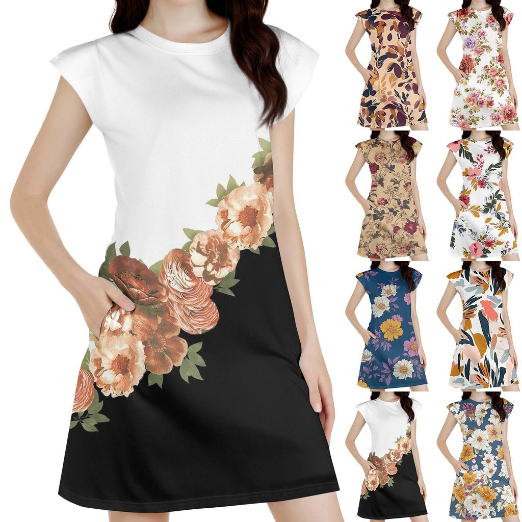 Женское повседневное платье без рукавов с цветочным принтом и круглым вырезом