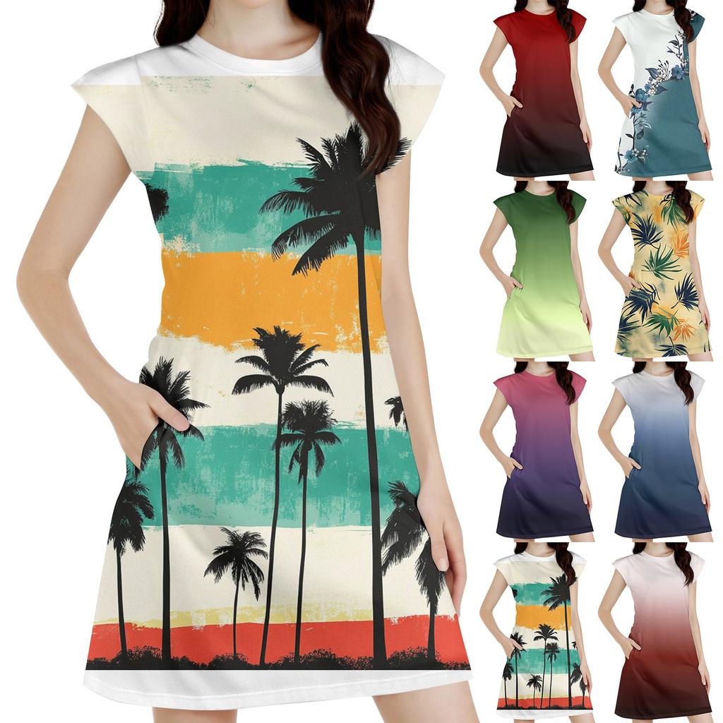 Женское повседневное платье без рукавов с цветочным принтом и круглым вырезом
