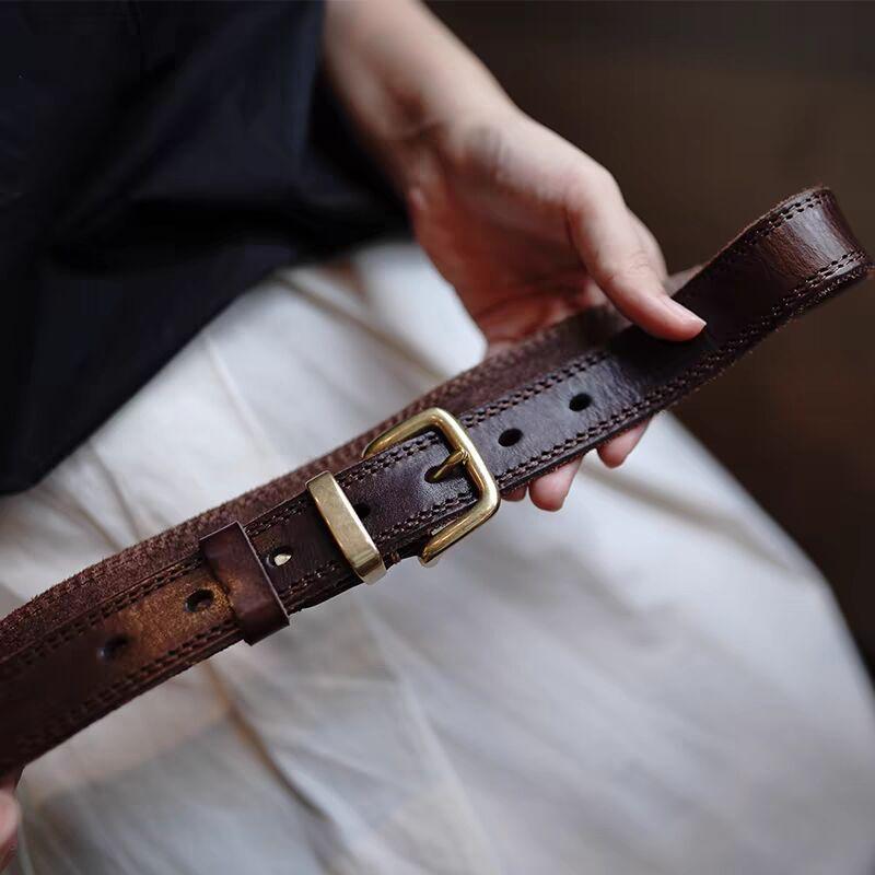 Женский мягкий ремень из коровьей кожи первого слоя с медной пряжкой, джинсовый ремень, кожаный ремень, ретро, простой, модный, коричневый