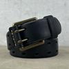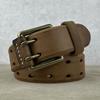 Мужской ремень из натуральной кожи с двойной медной пряжкой, ретро, первый слой, из натуральной коровьей кожи, американский полый ремень