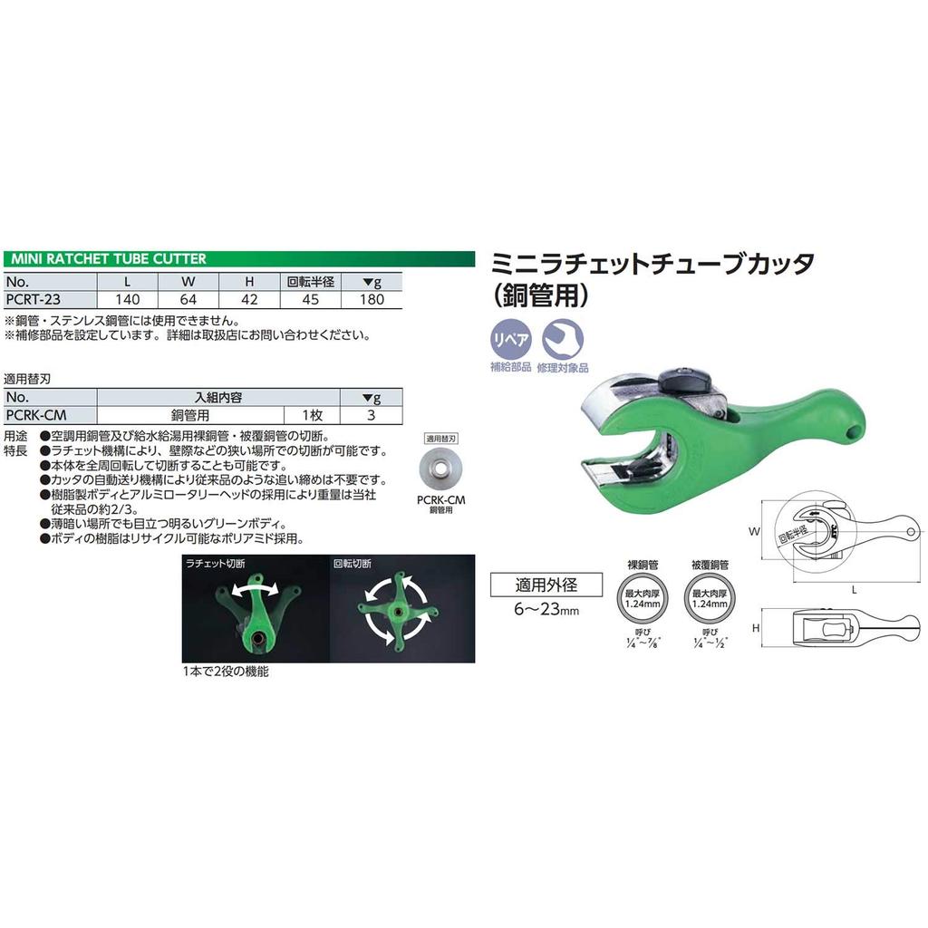 Мини-труборез с храповым механизмом Kyoto Machinery PCRT23 из меди (КТК) (Для труб)