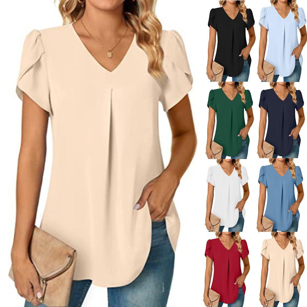 Блузка с коротким рукавом и V-образным вырезом, летняя женская однотонная свободная блузка для тренировок SZE-ST23015 — купить товар онлайн с бесплатной доставкой по всему миру!