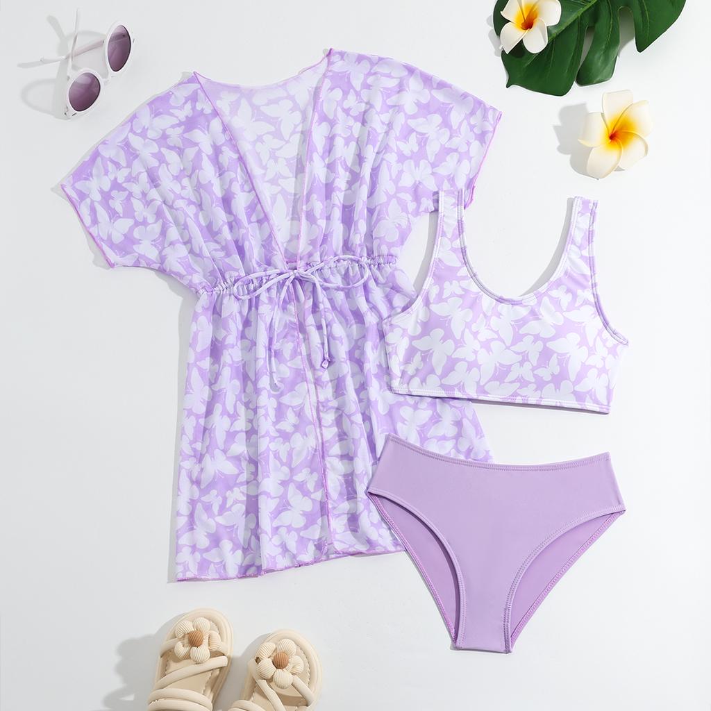 Модный комплект из 3 предметов для девочек, купальный костюм с принтом, топ с короткими рукавами, прикрытый купальник, купальный костюм — купить товар онлайн с бесплатной доставкой до всему миру!