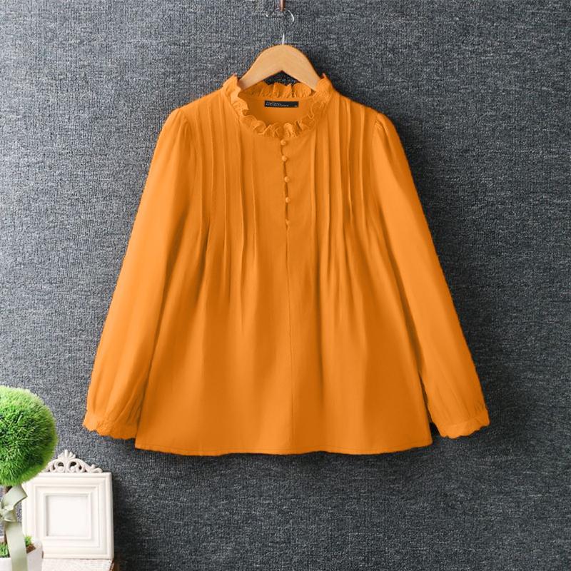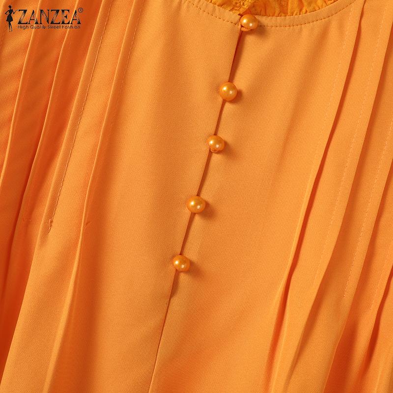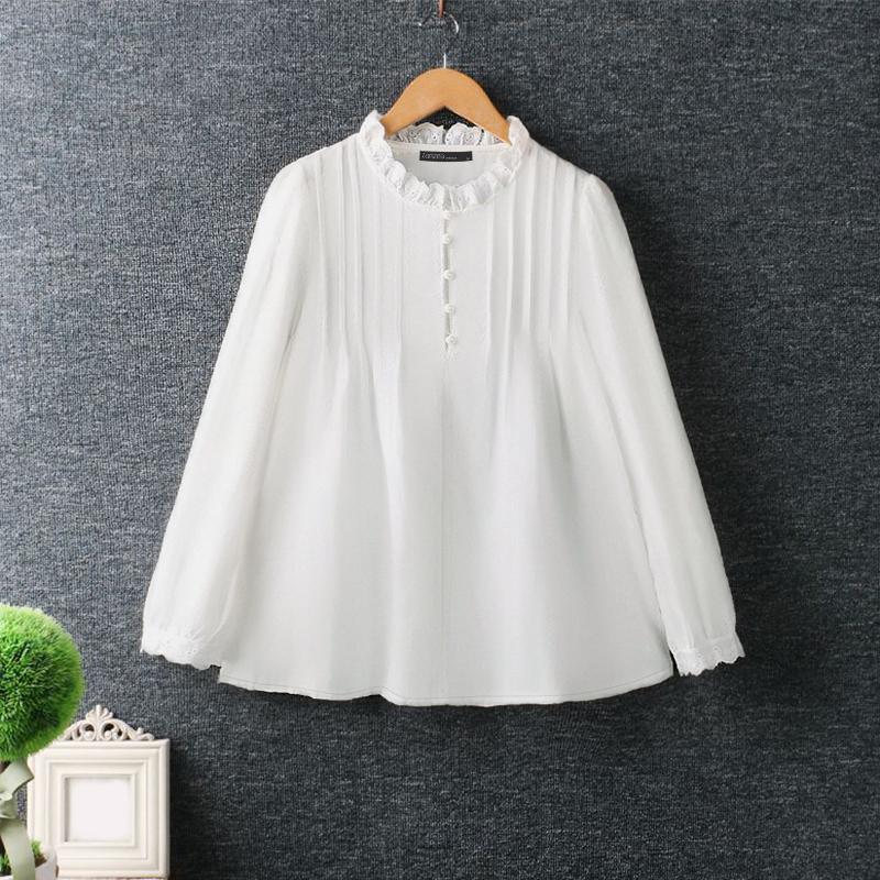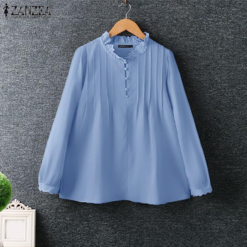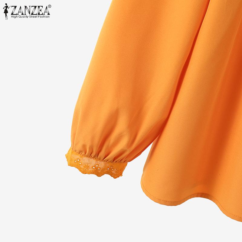 ZANZEA Женская повседневная кружевная блузка с круглым вырезом и длинным рукавом