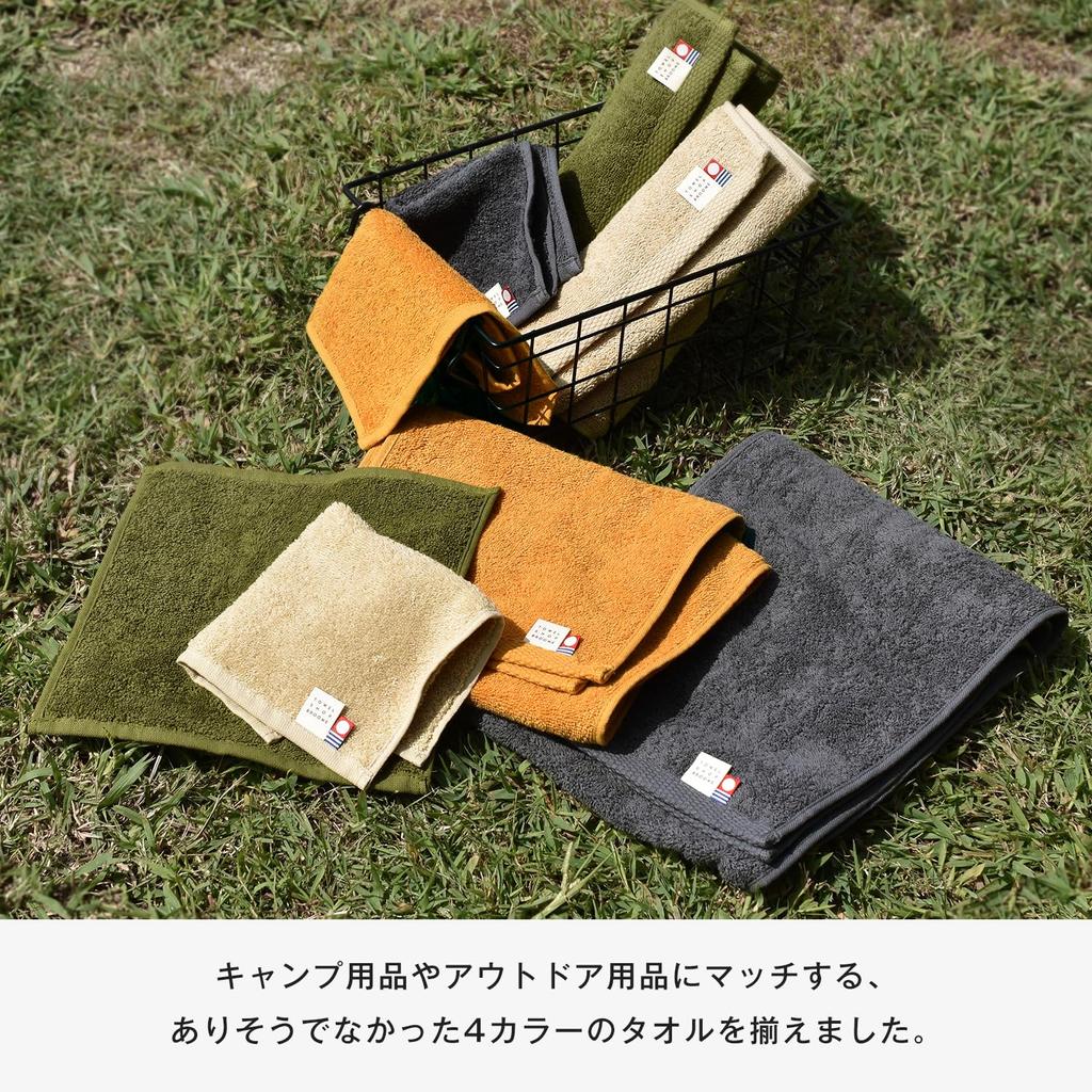 [Рекомендуется для использования на открытом воздухе] Полотенца Imabari с привлекательными цветами, которые будут выделяться на открытом воздухе. Доступно в 4 цветах, включая хаки и темно-синий, чтобы соответствовать снаряжению для кемпинга и отдыха на природе.