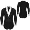 Мужской облегающий танцевальный купальник-комбинезон для латиноамериканских танцев, танго, бальных танцев, длинный рукав, оборчатый воротник, блестящий боди со стразами