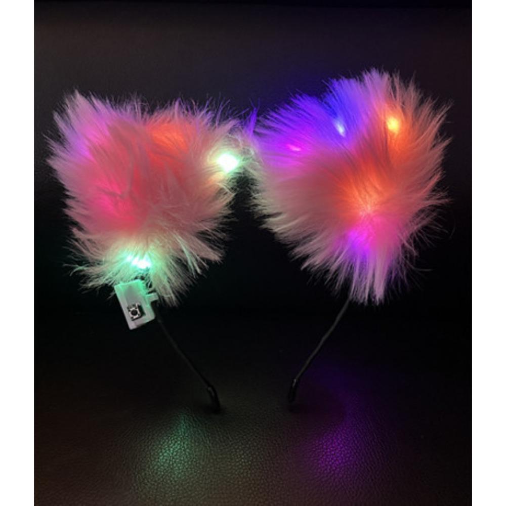 Светящаяся повязка на голову Повязка на голову Мех лисы Кошачьи ушки Повязка на голову