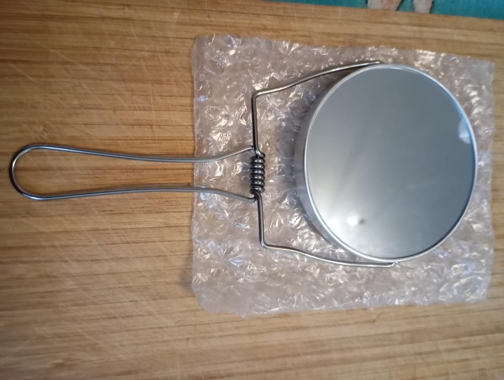 Зеркало карманное в чехле. Заказывала 27.11.21. Посылка пришла 29.01.22. Очень понравилось. Материал очень плотный,похож на металл. Передаёт изображение чётко,не увеличивает.