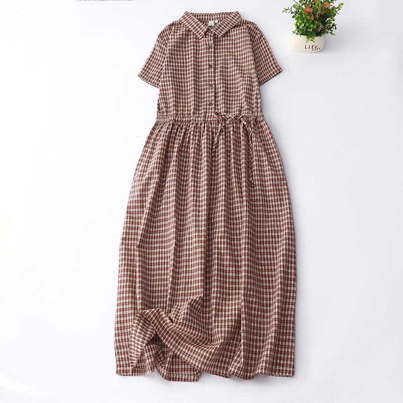 2025 лето Mori ретро литературный хлопковый клетчатый рубашка юбка шнуровка талия среднее и длинное платье для женщин — купить товар онлайн с бесплатной доставкой до всему миру!