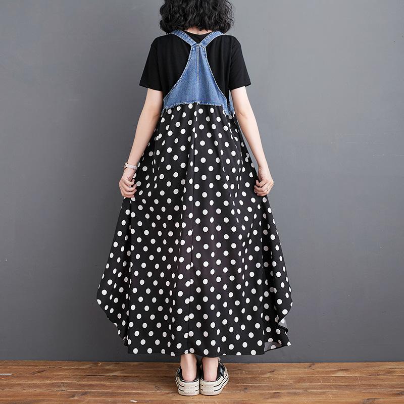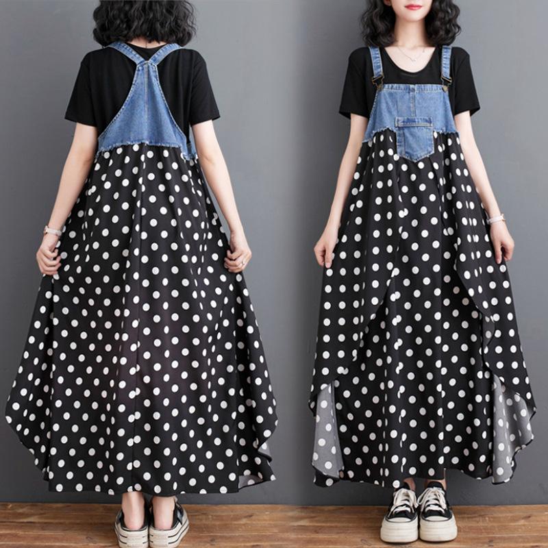 2025 летняя одежда новая оборка край свободный принт джинсовый дизайн чувственный ремешок среднее и длинное платье литературный и свежий
