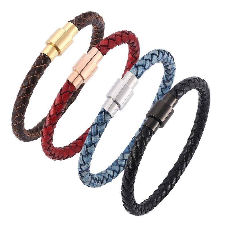 Модный браслет из натуральной плетеной кожи, мужской браслет для женщин, ювелирные изделия, кожаный браслет с застежками