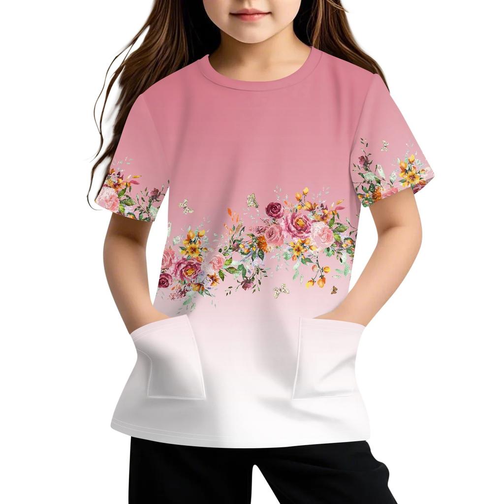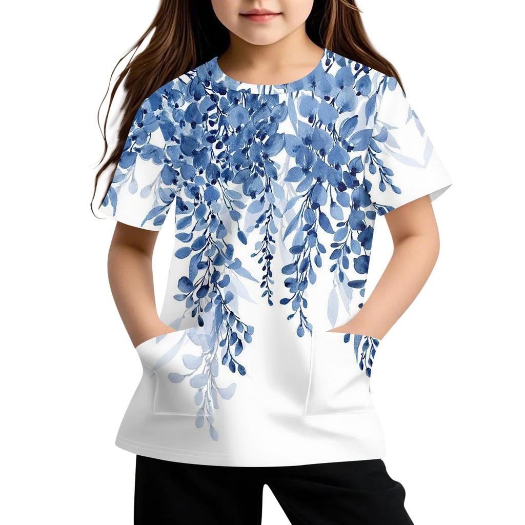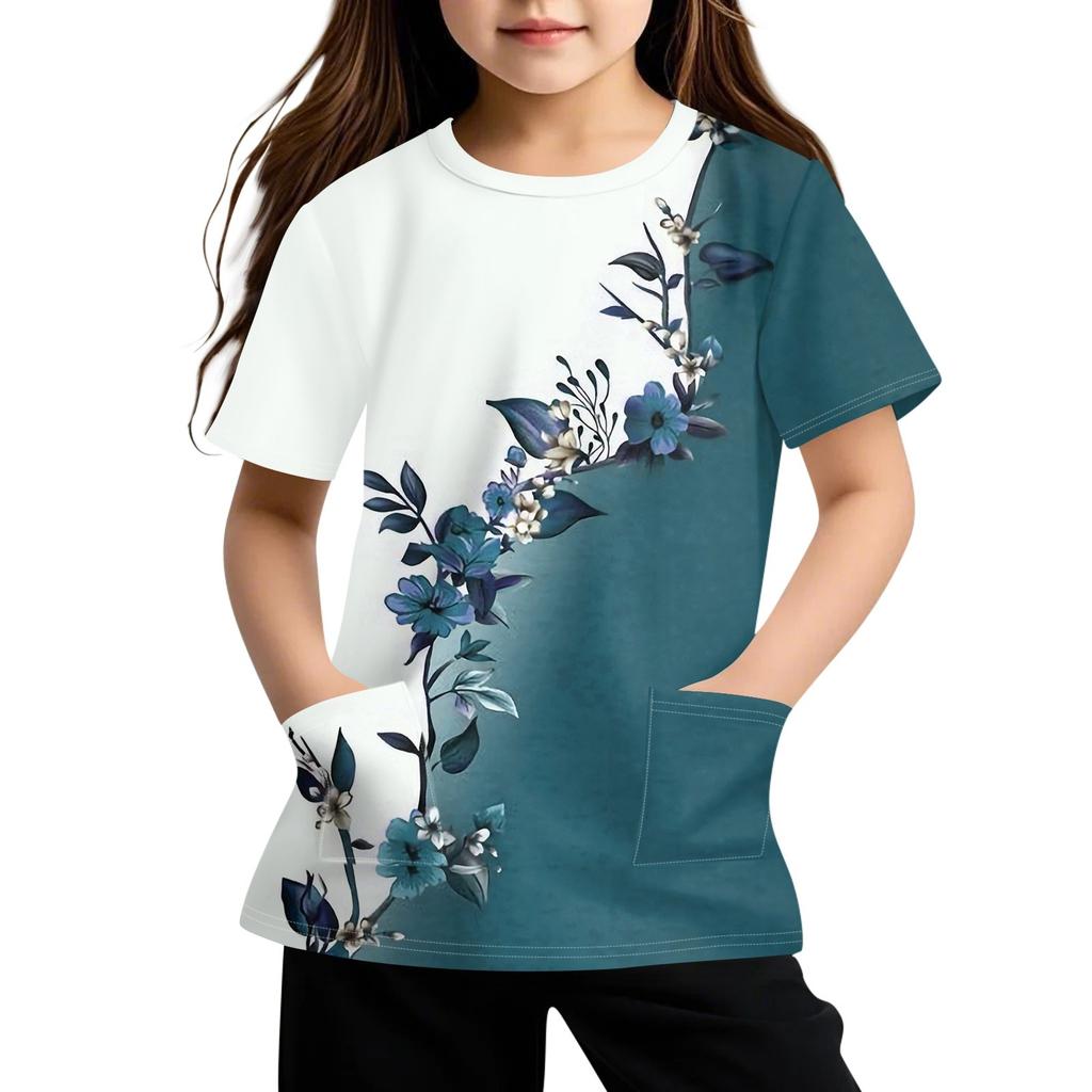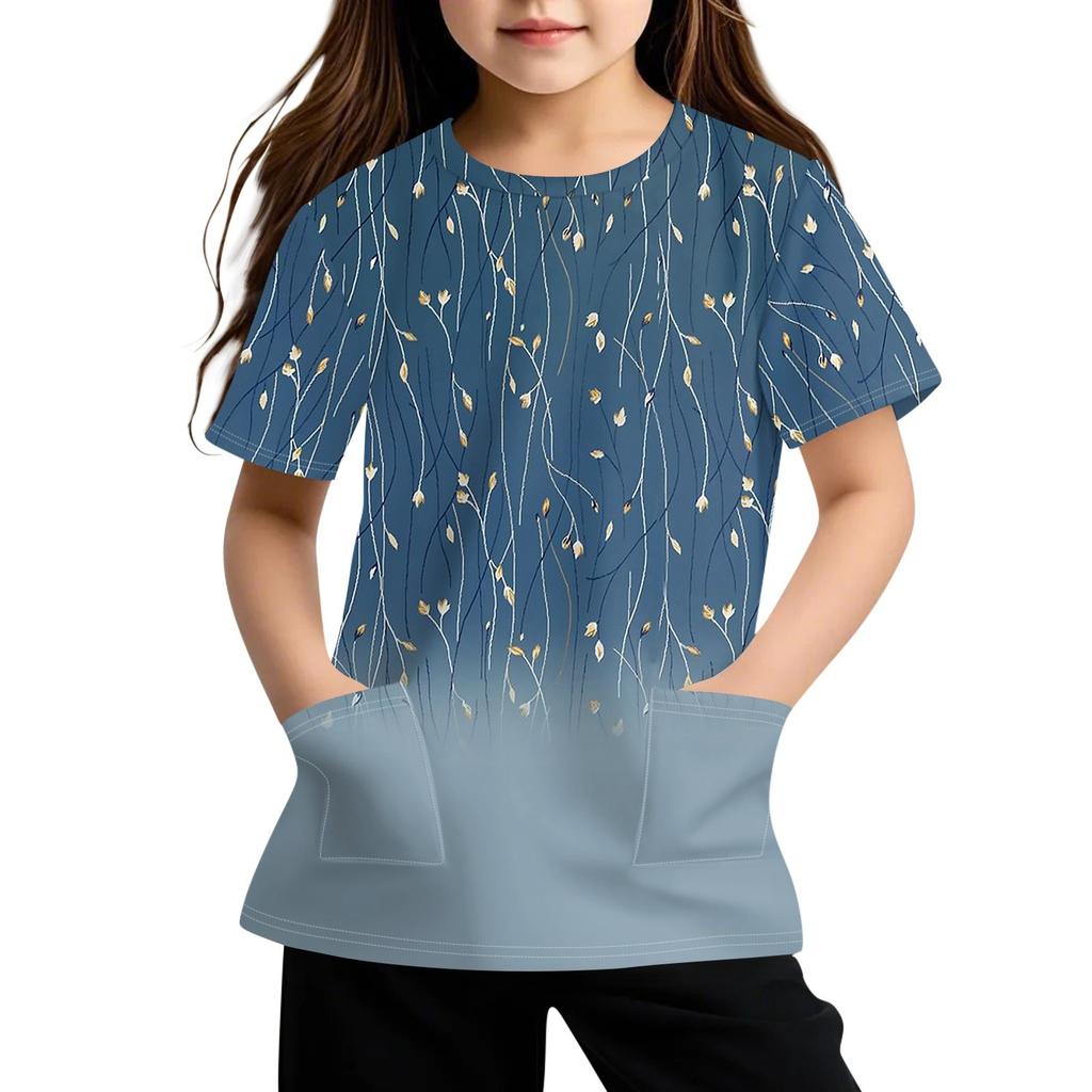 Детская футболка с короткими рукавами и карманами, повседневная футболка с принтом, круглый вырез, блузка-пуловер