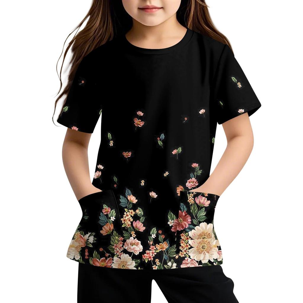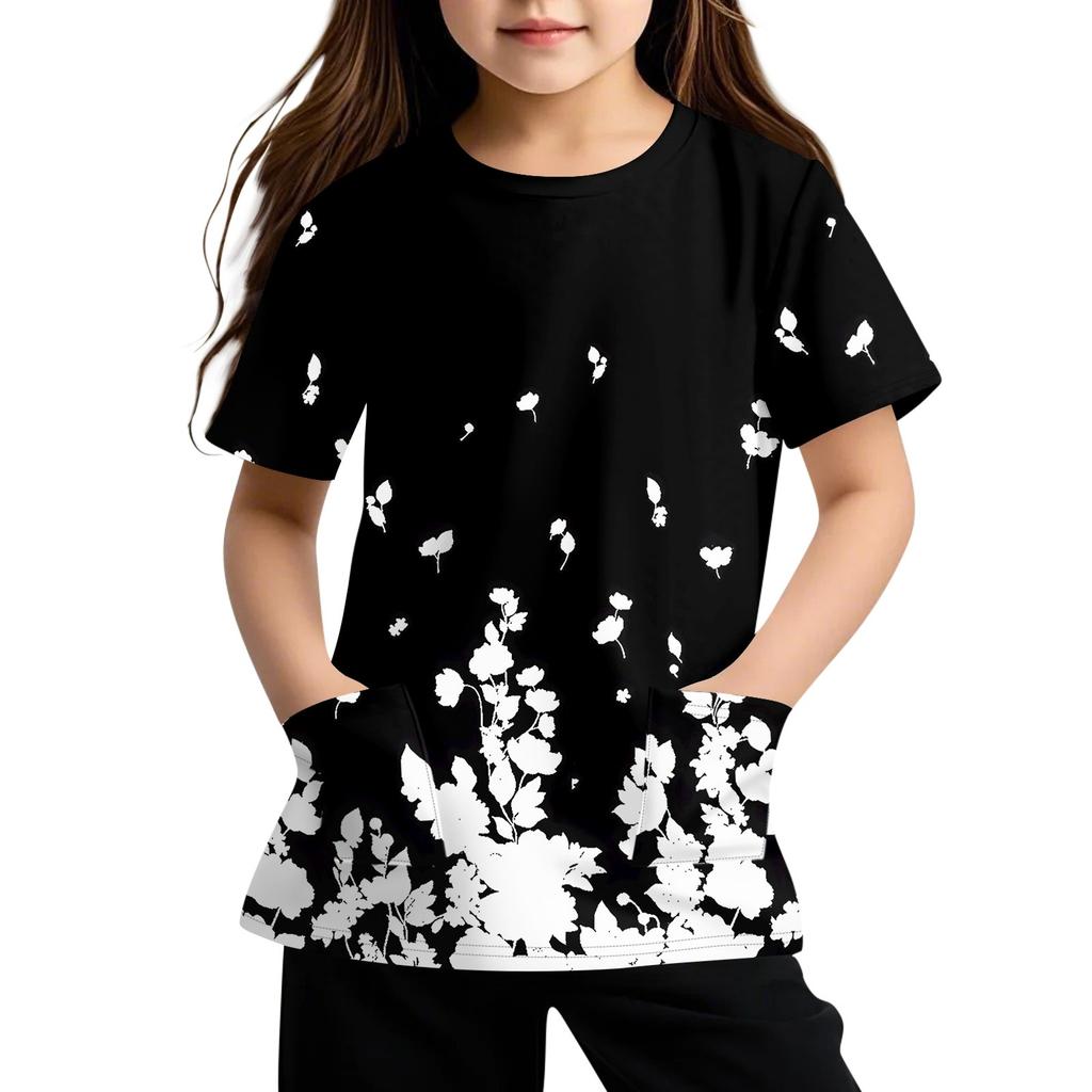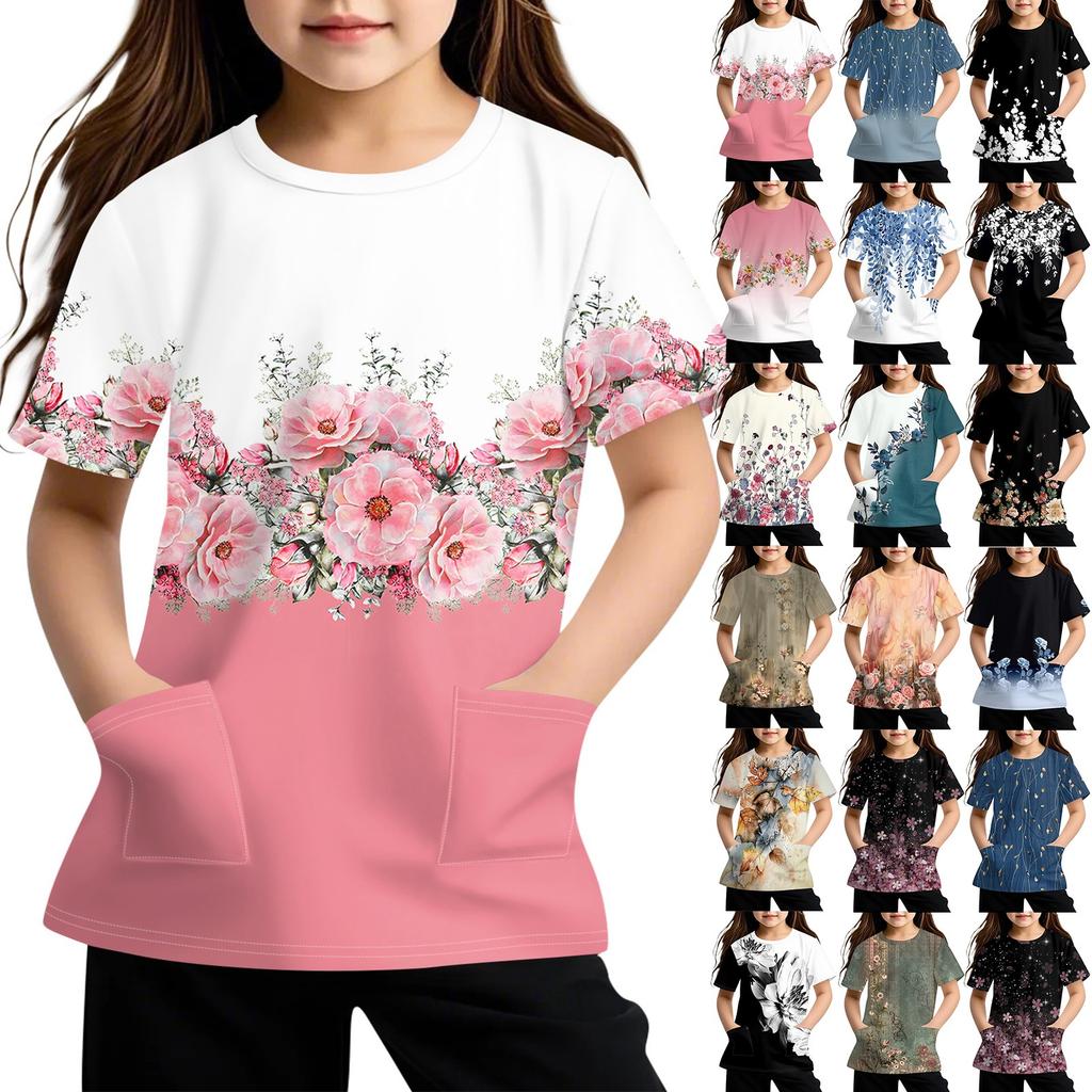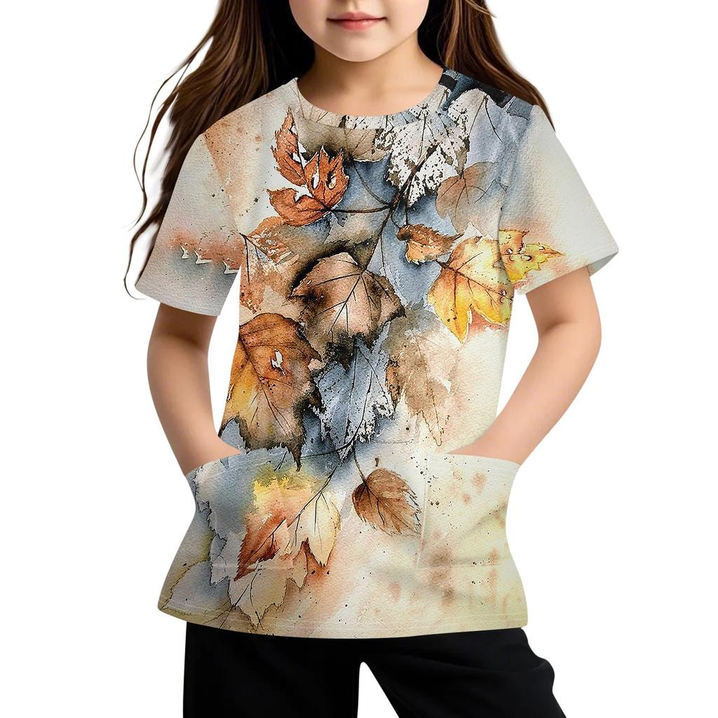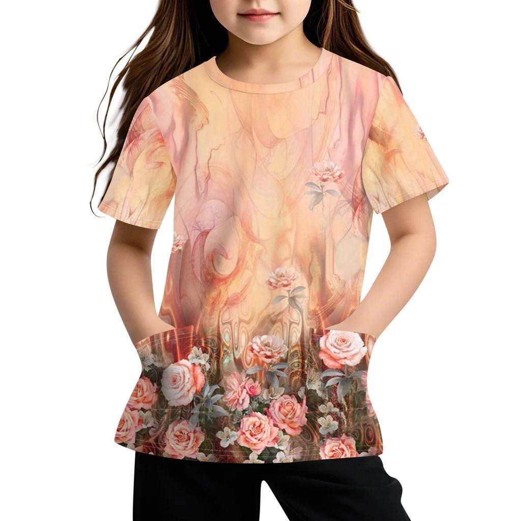 Детская футболка с короткими рукавами и карманами, повседневная футболка с принтом, круглый вырез, блузка-пуловер