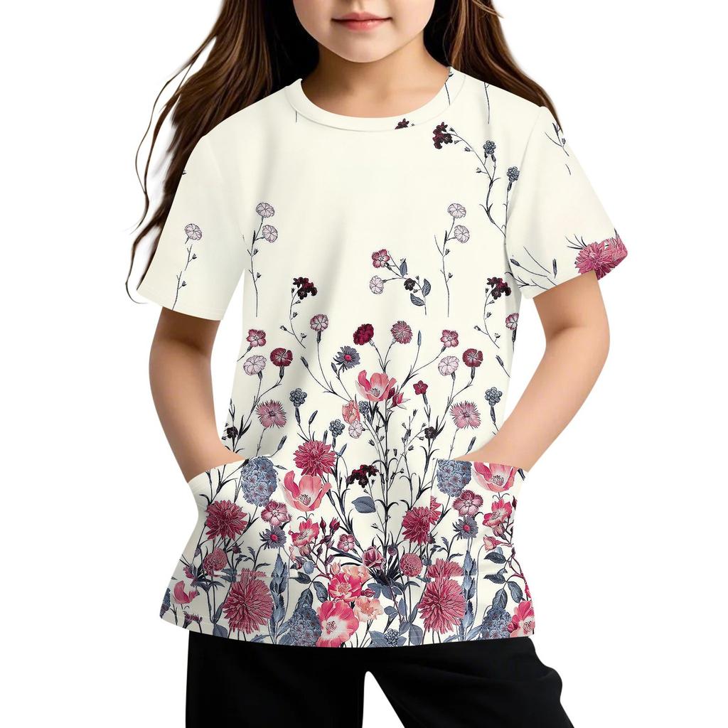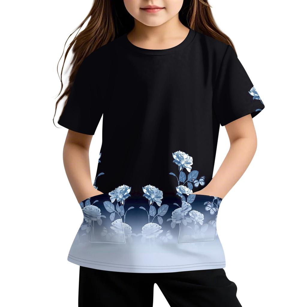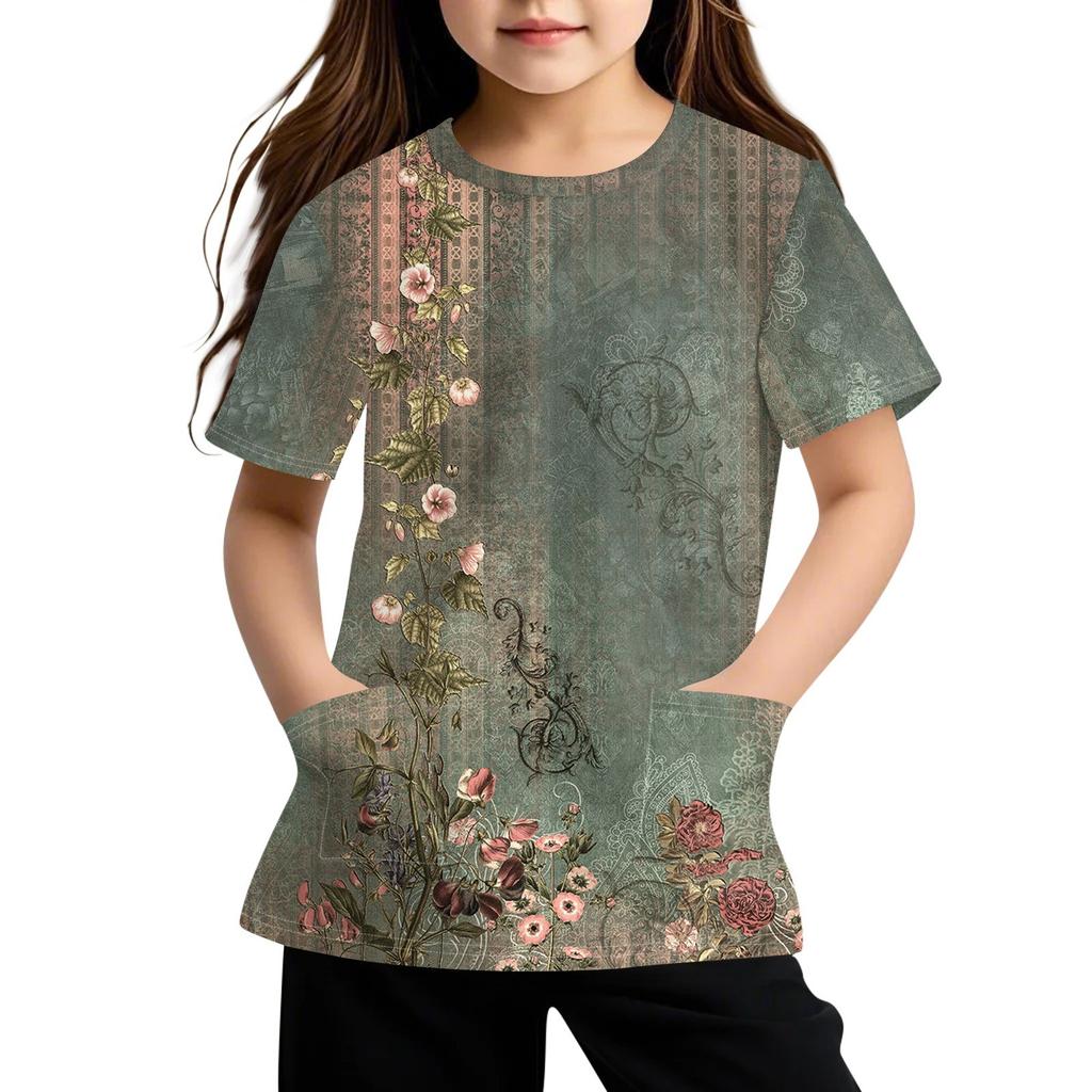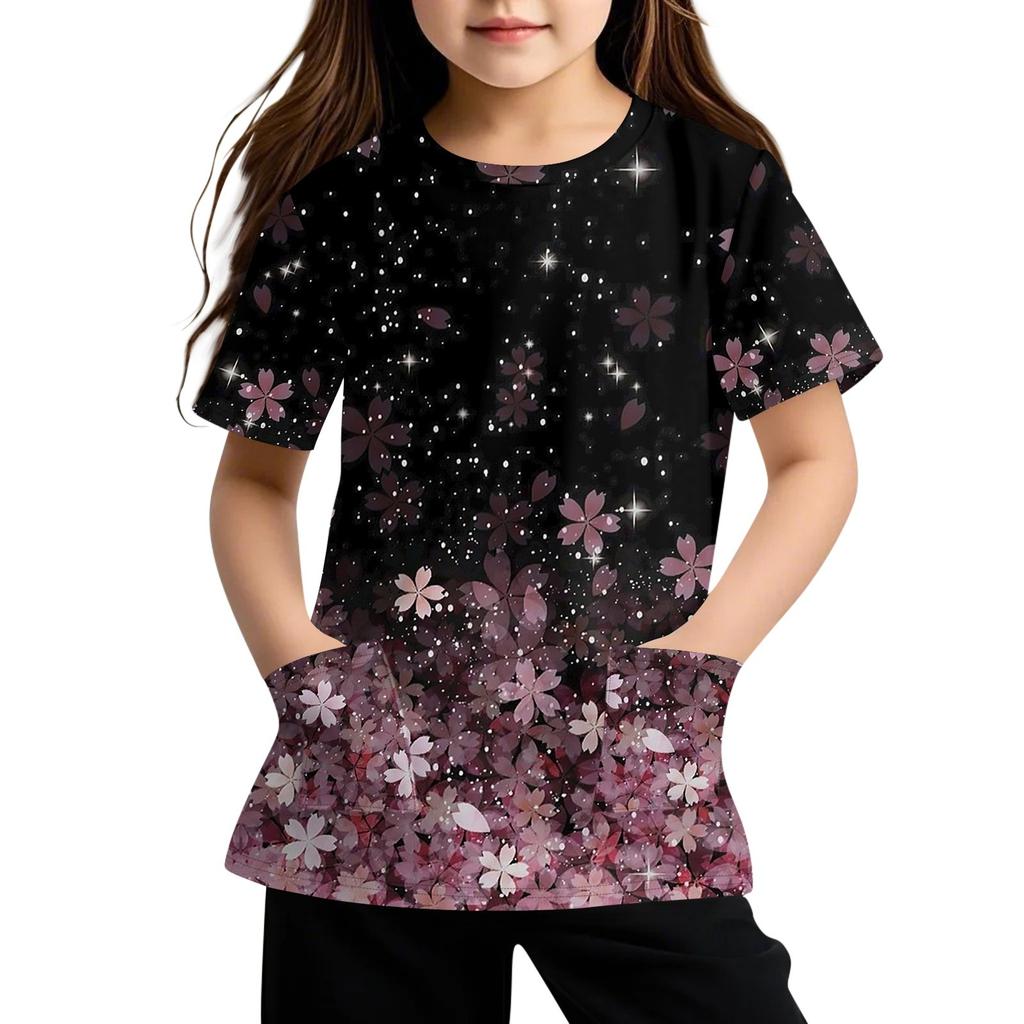Детская футболка с короткими рукавами и карманами, повседневная футболка с принтом, круглый вырез, блузка-пуловер