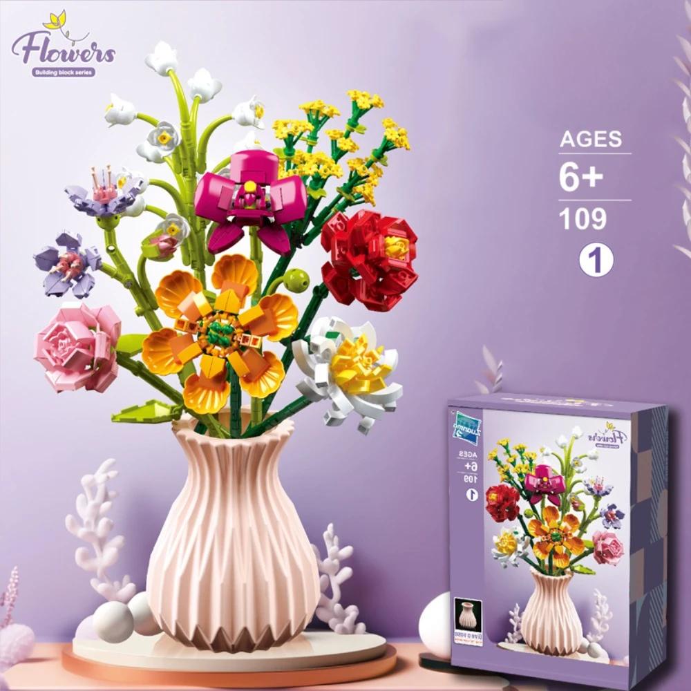 Микро-конструктор с вазой «Вечный букет цветов», набор для креативного украшения дома, совместим с LEGO — купить товар онлайн с бесплатной доставкой по всему миру!