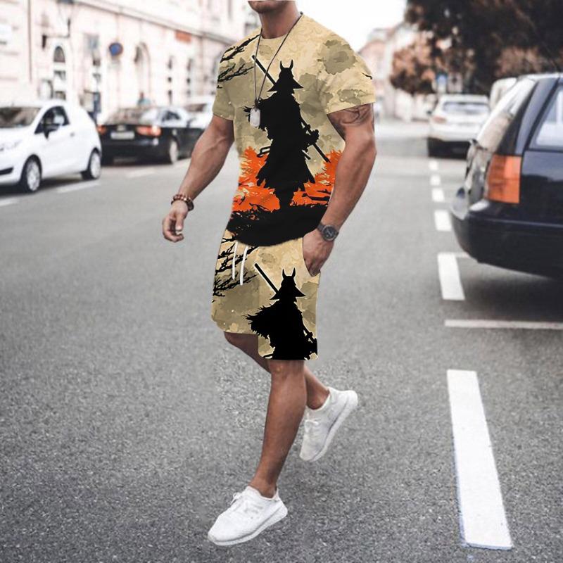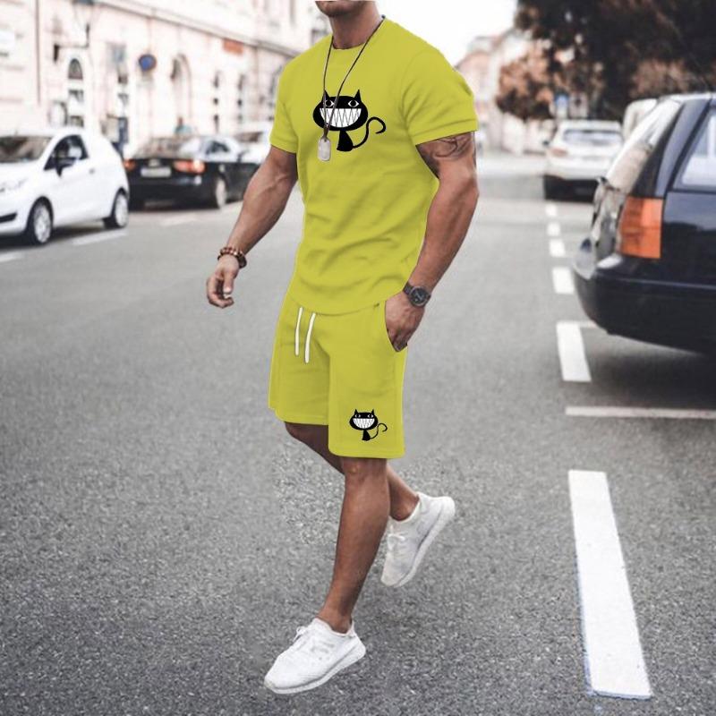 Летняя мода, новый комплект футболок, забавный мужской спортивный комплект с принтом, комплект из 2 предметов, мужская спортивная одежда в стиле хип-хоп, уличная одежда XS-6XL