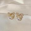 «Серьги-бантики из серебряных игл с жемчугом и цирконием»: Нишевый дизайн, стильный и универсальный, легкий роскошный аксессуар высокого класса.