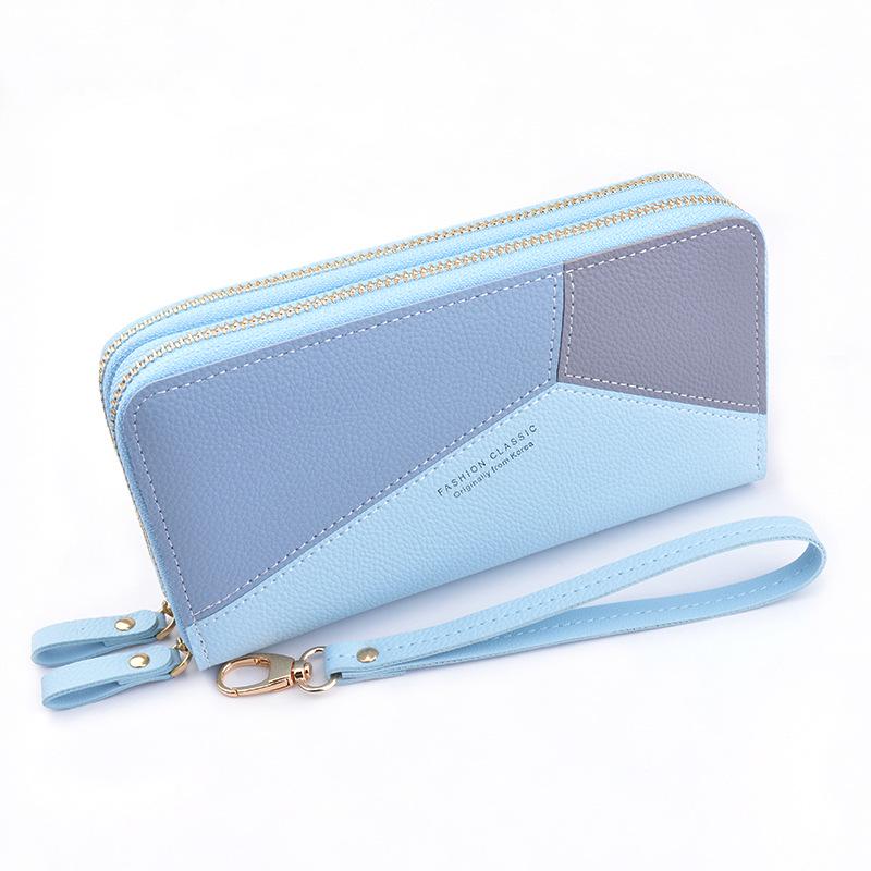 Стильный женский длинный клатч с двойной молнией: Контрастная строчка, большая вместимость, двухслойный кошелек и сумка для телефона