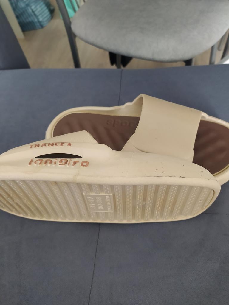 Тапочки совершенно не соответствуют заявленному товару!!!!!!! Пришли обычные резиновые тапочки.. Мало того, что с пятнами , которые не отмываются, ещё в добавок при ходьбе шипят. Ужас!!! Не рекомендую покупать такой товар!!!