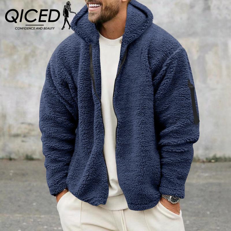QICED Осенне-зимняя мужская двухсторонняя флисовая теплая куртка с капюшоном на молнии для улицы и дома