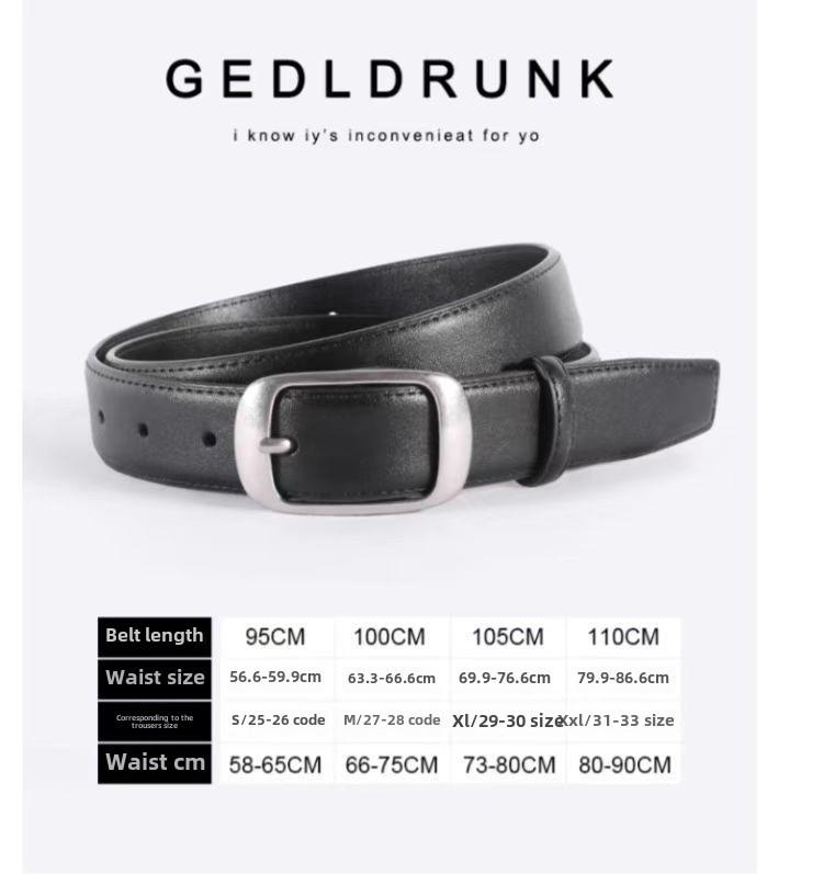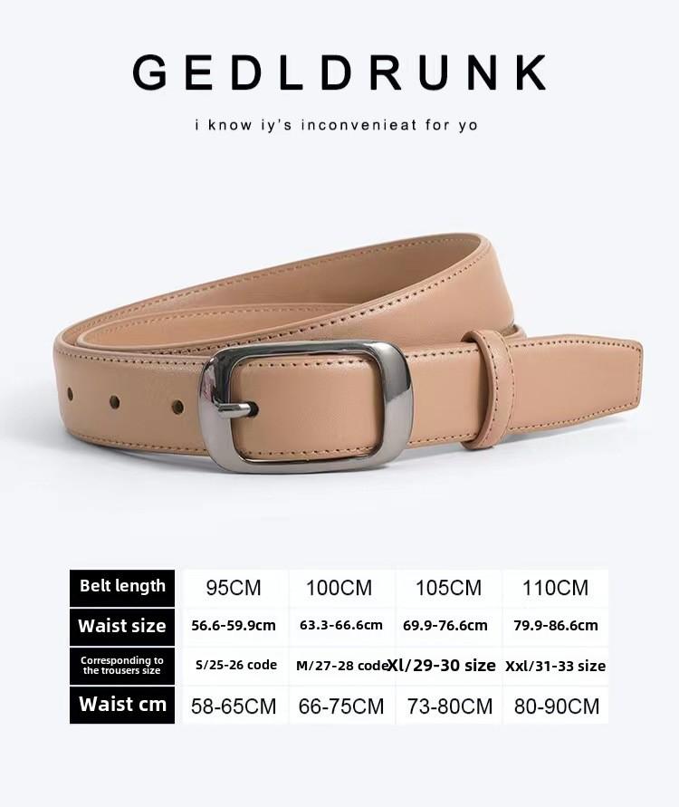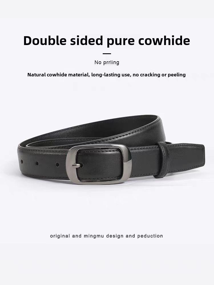 Женский ремень из натуральной кожи: Стильная, универсальная пряжка, высококачественный дизайн для джинсов, простая воловья кожа.