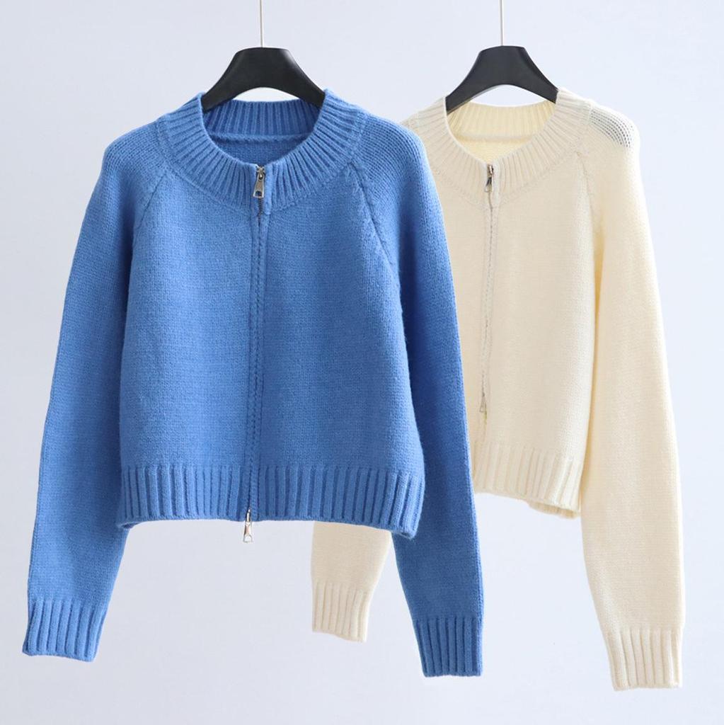 Женский вязаный кардиган с двойной молнией - универсальная короткая куртка-свитер на осень/зиму