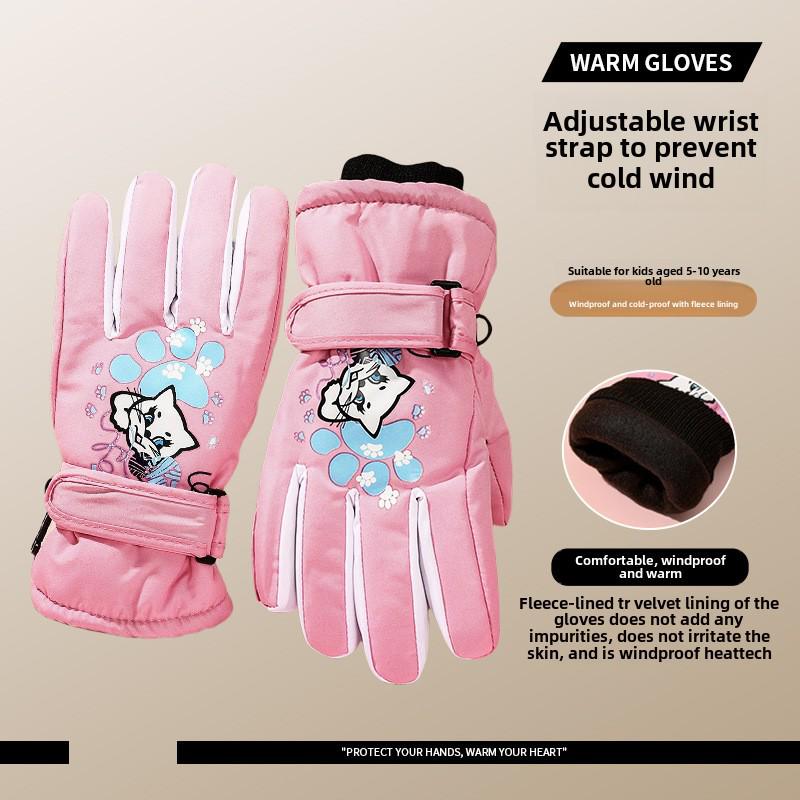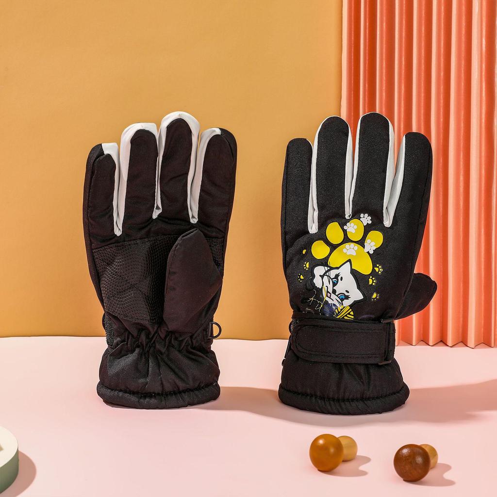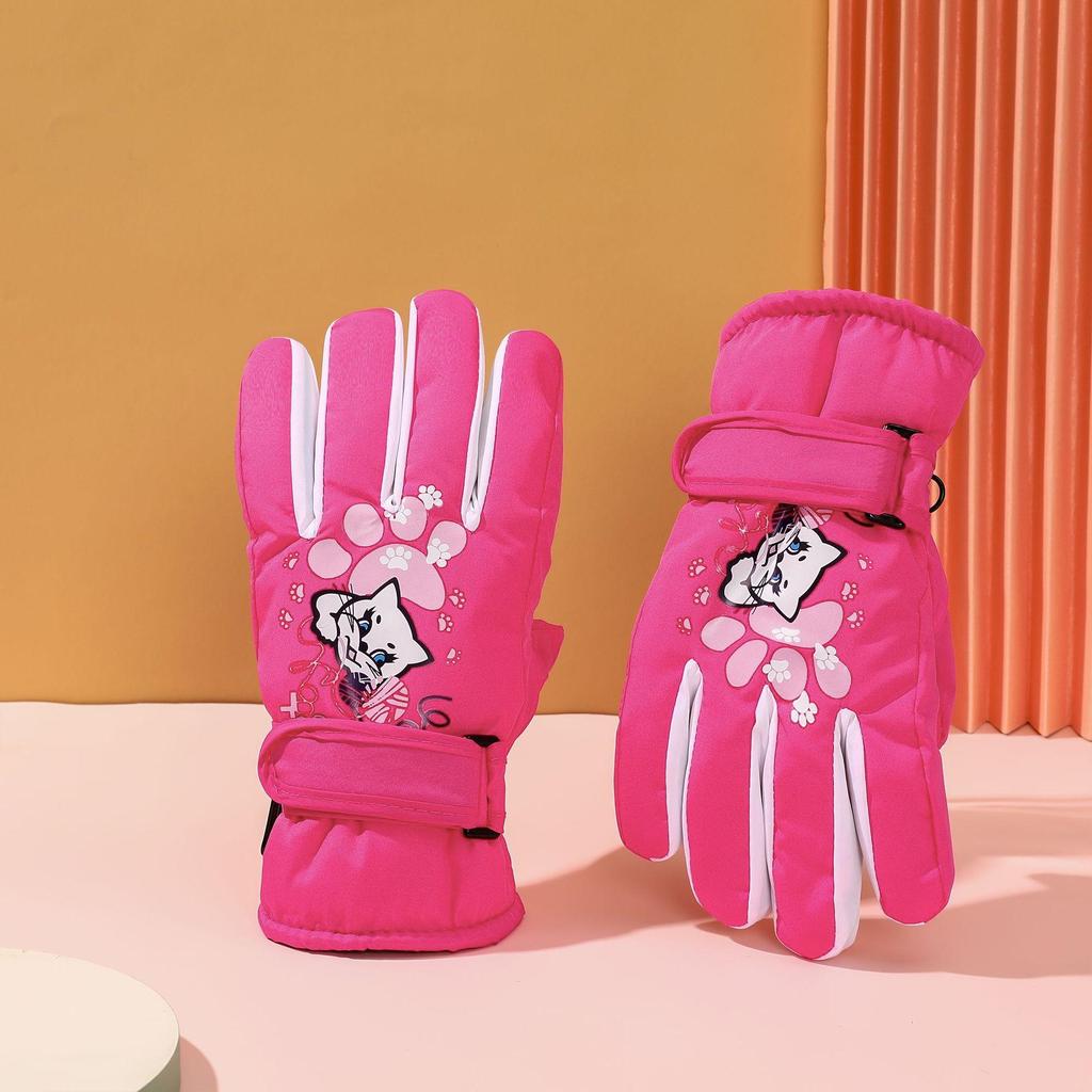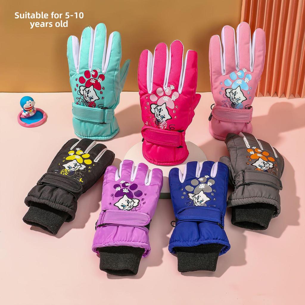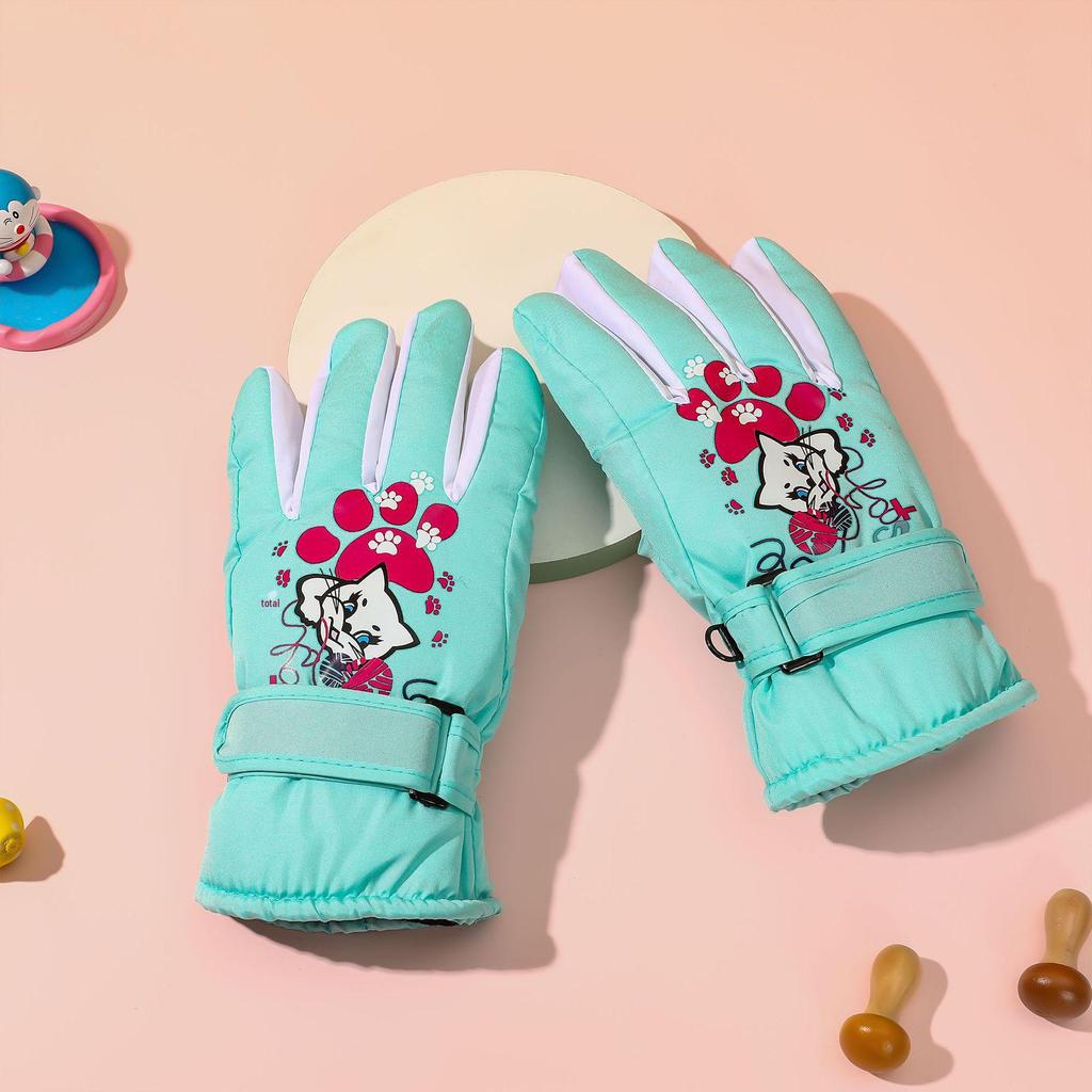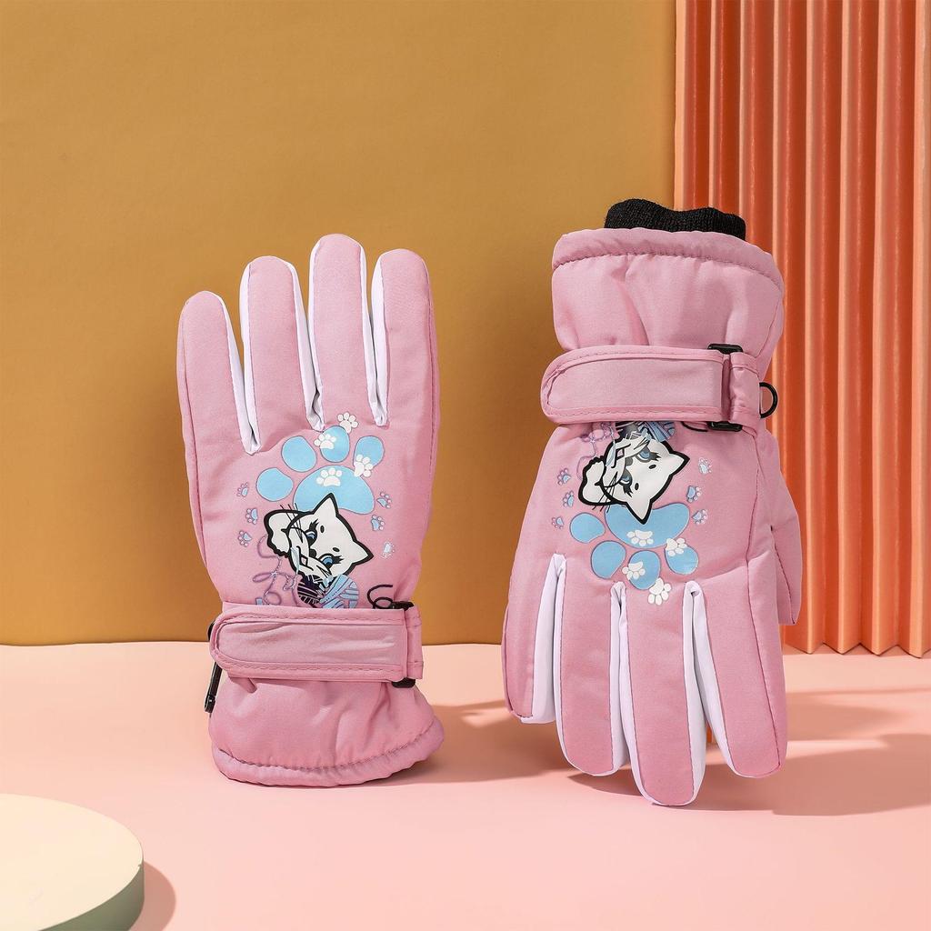 Детские и подростковые лыжные перчатки с принтом котят, вязаными ветрозащитными манжетами и плюшевой подкладкой