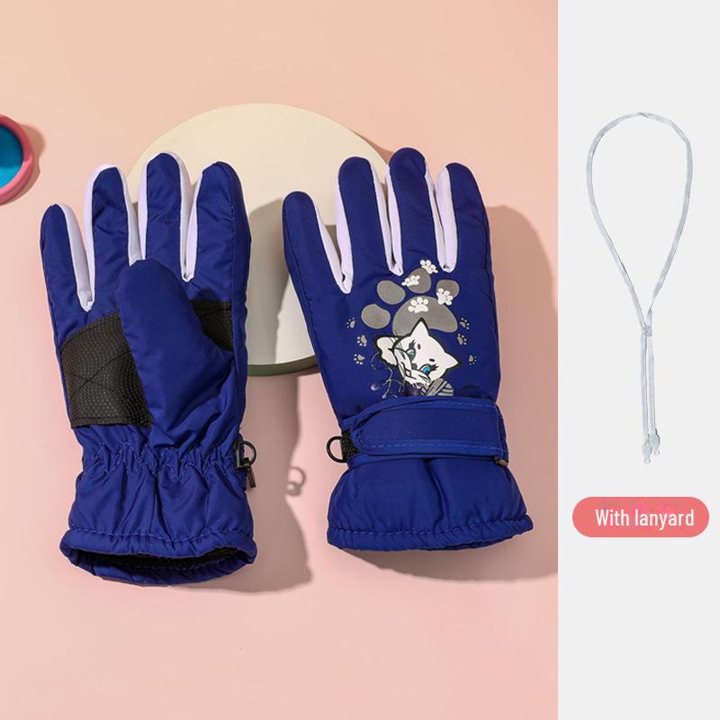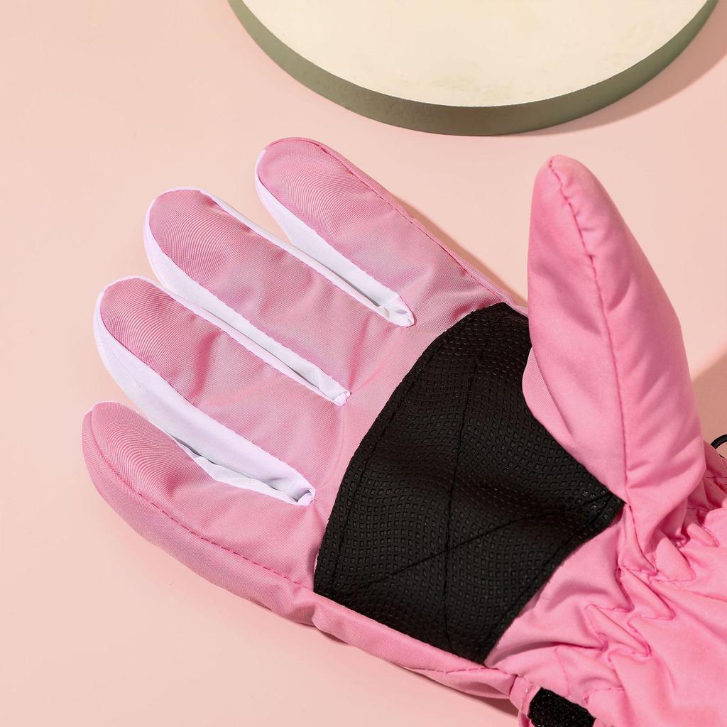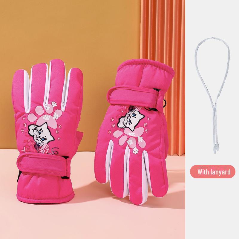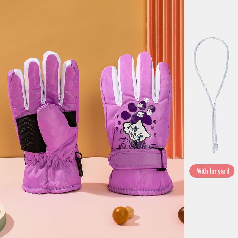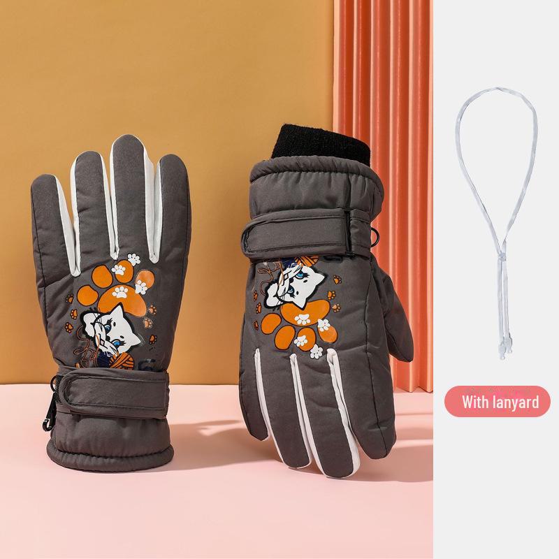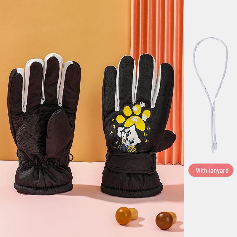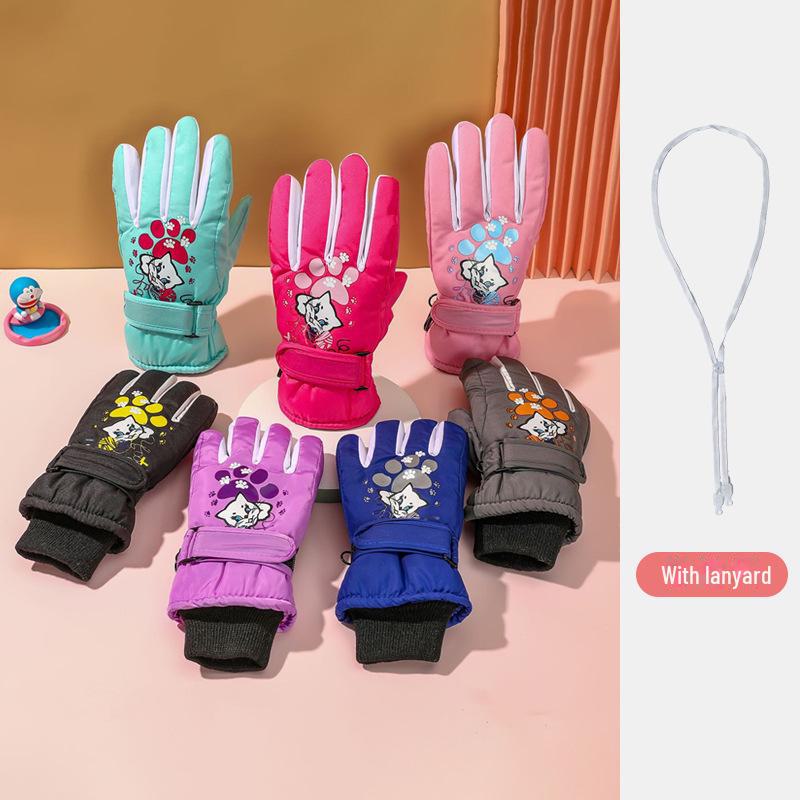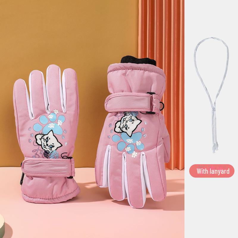 Детские и подростковые лыжные перчатки с принтом котят, вязаными ветрозащитными манжетами и плюшевой подкладкой