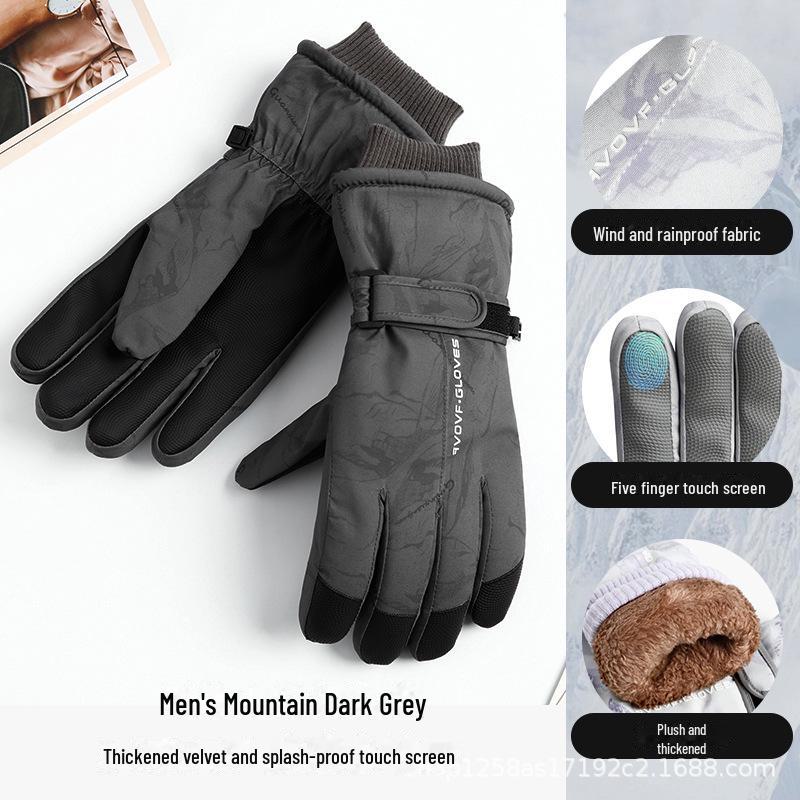 Зимние лыжные перчатки унисекс: Плотный, с бархатной подкладкой, ветрозащитный, нескользящий, совместимый с сенсорным экраном для велоспорта, альпинизма и спорта