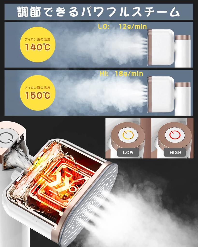 ♨ «Мощная функция непрерывной подачи пара» После нажатия кнопки подачи пара пар будет продолжать поступать в течение 15 минут.. Это удобно и вам не придется нажимать кнопку снова и снова.. Уровень пара можно регулировать в двух уровнях, а также использовать для ухода за деликатными материалами, такими как шелк и мех.. (Низкий режим: 12 г/мин, режим Hi: 18 г/мин) Среди отпаривателей для одежды с функцией отжима, которые также можно использовать в качестве утюга, привлекательным является сравнительно большое количество пара — 18 г/мин.