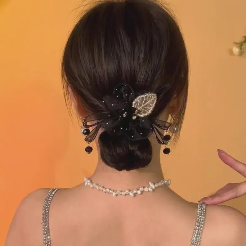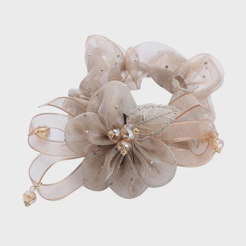 «Элегантная резинка для волос из органзы с цветочным узором — стильная повязка на голову для женщин»