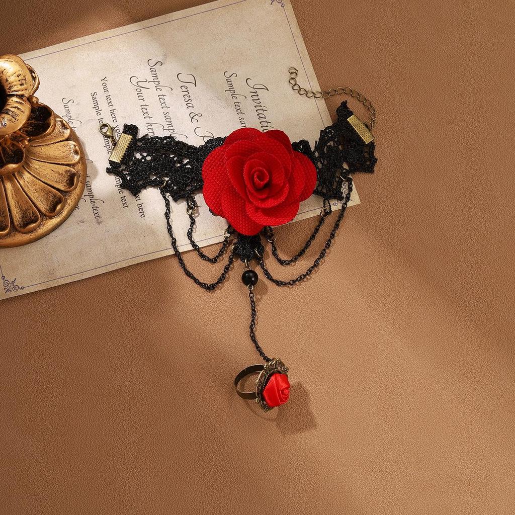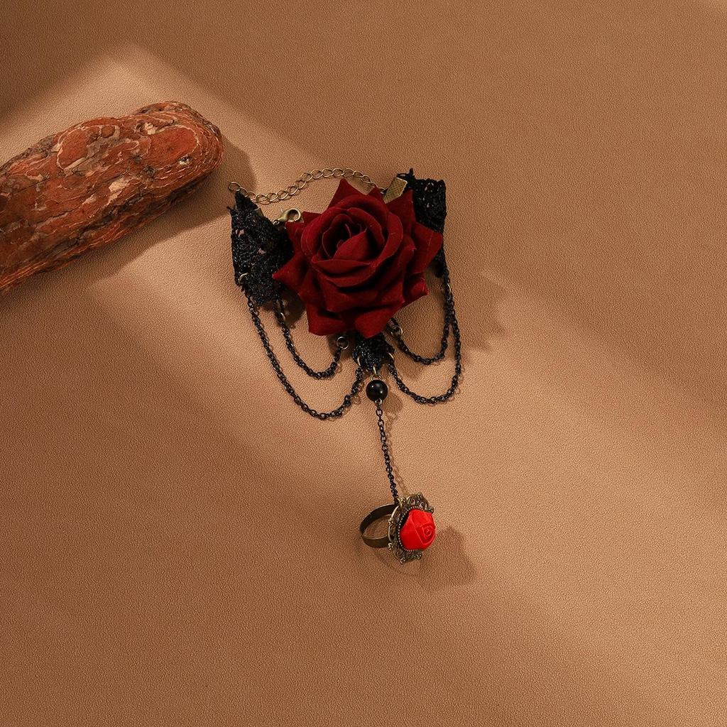 «Винтажный готический браслет на палец с кружевом в стиле Лолита-Роза»