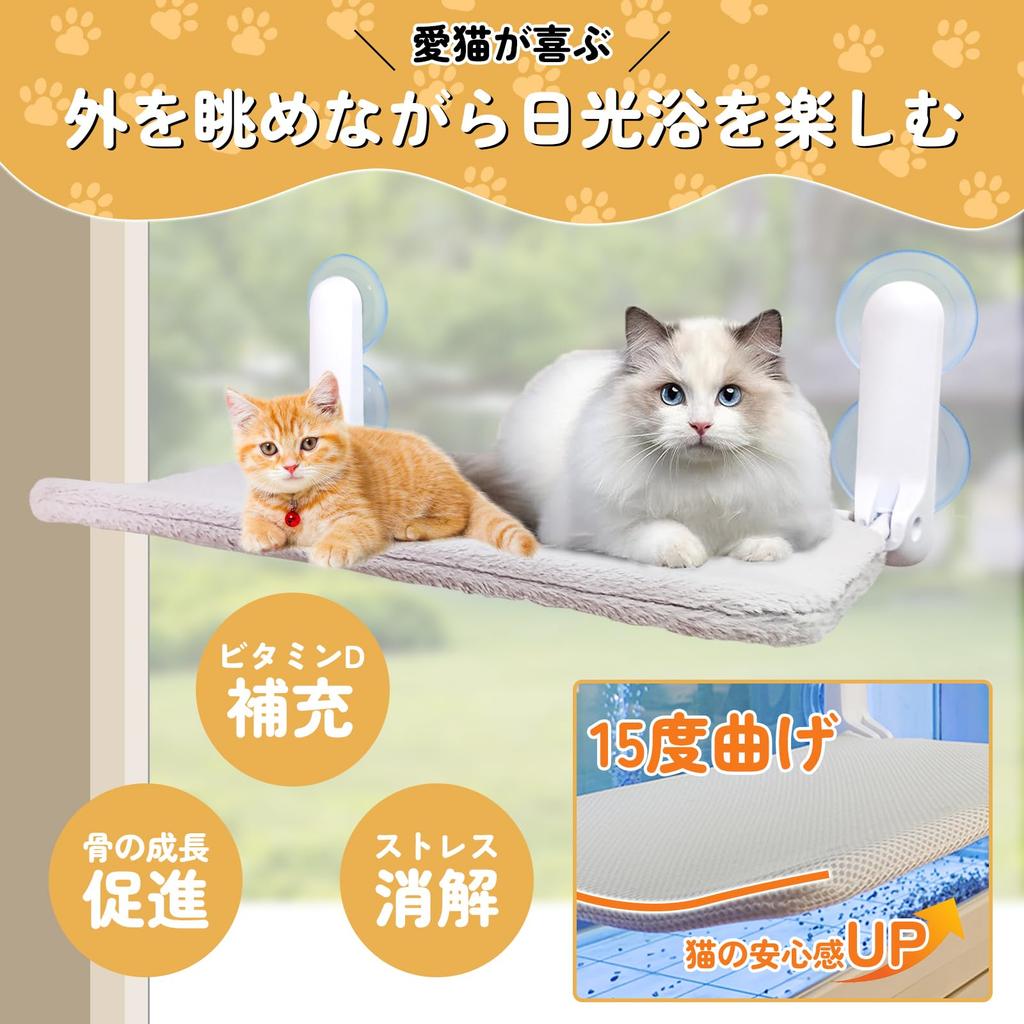[Гамак на окно для вашего кота, чтобы наслаждаться] Кошачий гамак можно установить на оконное стекло, позволяя кошкам наслаждаться солнечными ваннами, глядя наружу, что делает его идеальным для кошек, которые любят узкие и высокие места.. Внешняя часть гамака спроектирована с изгибом 15 градусов, поэтому, когда кошка ложится, он мягко прилегает к телу и усиливает чувство безопасности.. Это создает место, где домашние кошки могут расслабиться, и имеет эффект устранения недостатка физических упражнений, поддержания здоровья и снятия стресса.