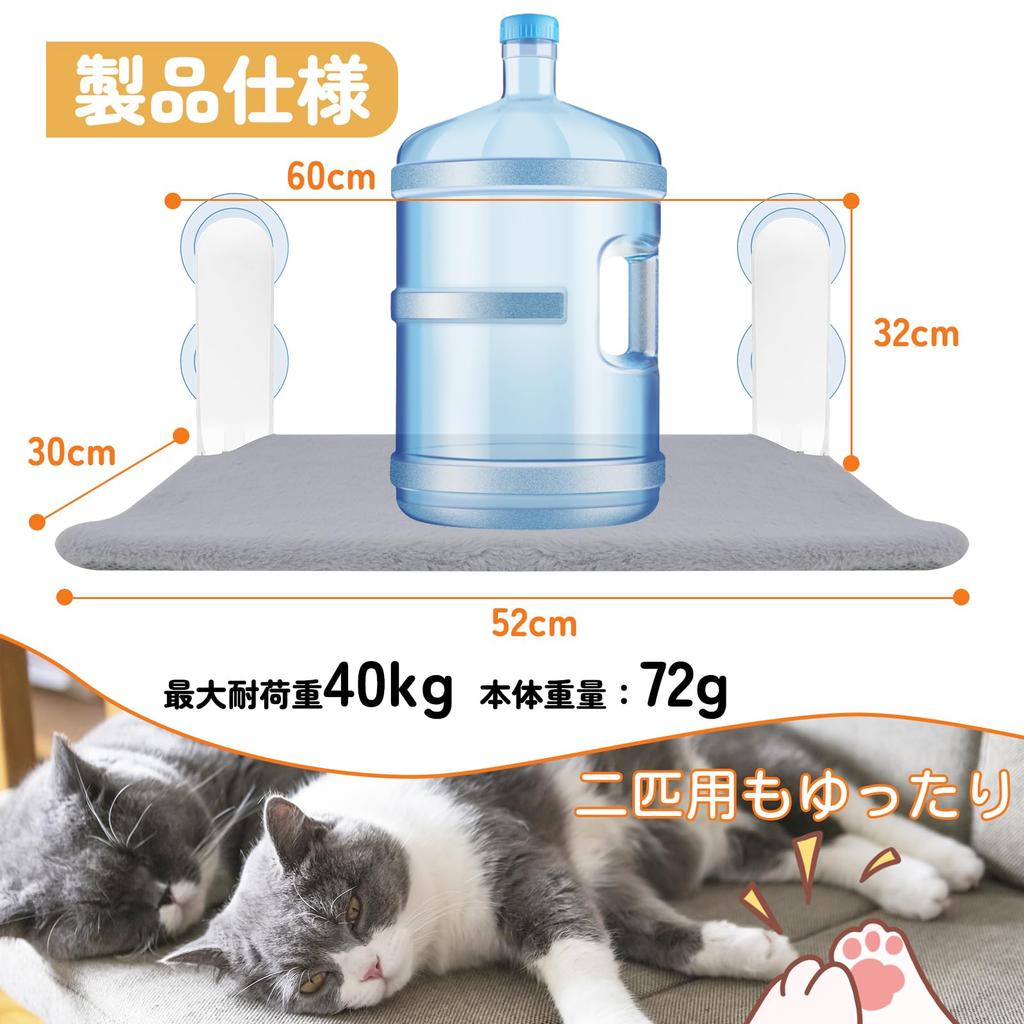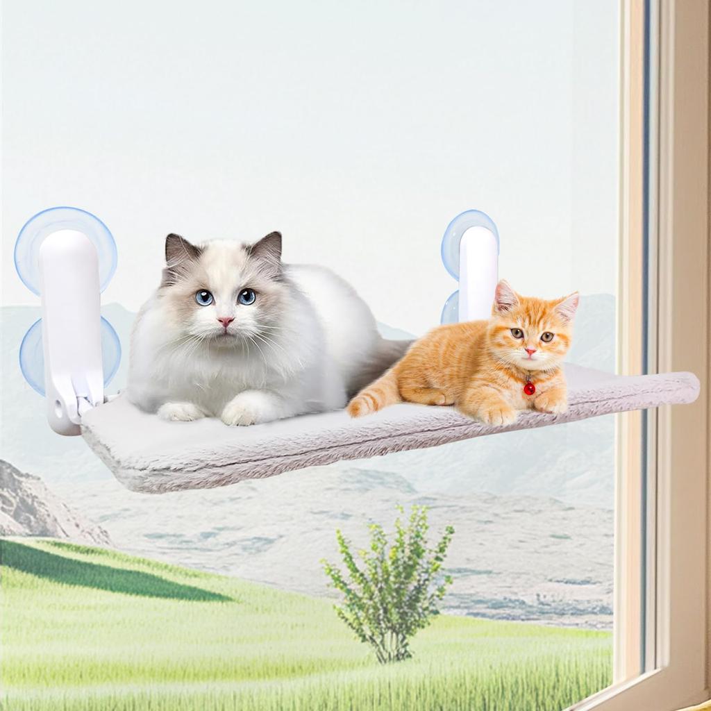 [Прочный и выдерживает нагрузку 40 кг] Гамак для окна крепится четырьмя присосками большого диаметра 85 мм, поэтому обладает отличной адгезией и на него можно прыгать. Высококачественная стальная рама не деформируется и не ржавеет даже после длительного использования.. Максимальная грузоподъемность составляет 40 кг, что делает его безопасной и устойчивой кошачьей лежанкой, достаточно просторной для двух кошек.