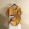 2025 Хлопковая женская одежда с ретро-узором в виде рыбки, повседневная свободная футболка из хлопка и льна с короткими рукавами, женская одежда, большой размер