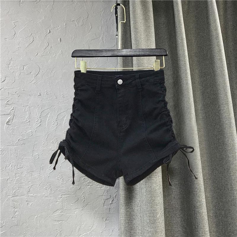 Молодежные обтягивающие модные и универсальные черные и серые джинсовые шорты женские летние дизайнерские эластичные прямые брюки А-силуэта с завязками на высокой талии