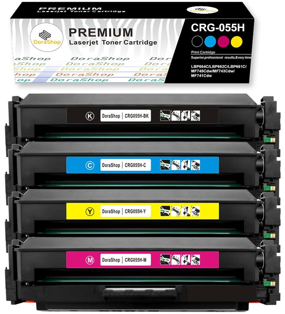 Canon CRG-055H (БК/К/М/Г) Комплект из 4 предметов "с микросхемой индикации оставшегося количества" Совместимый тонер-картридж большой емкости Совместимые модели: MF743Cdw/ MF745Cdw/MF741Cdw/LBP661C/ LBP662C/ LBP664C/ Международный стандарт ISO9001 сертифицированное заводское производство [DoraShop]