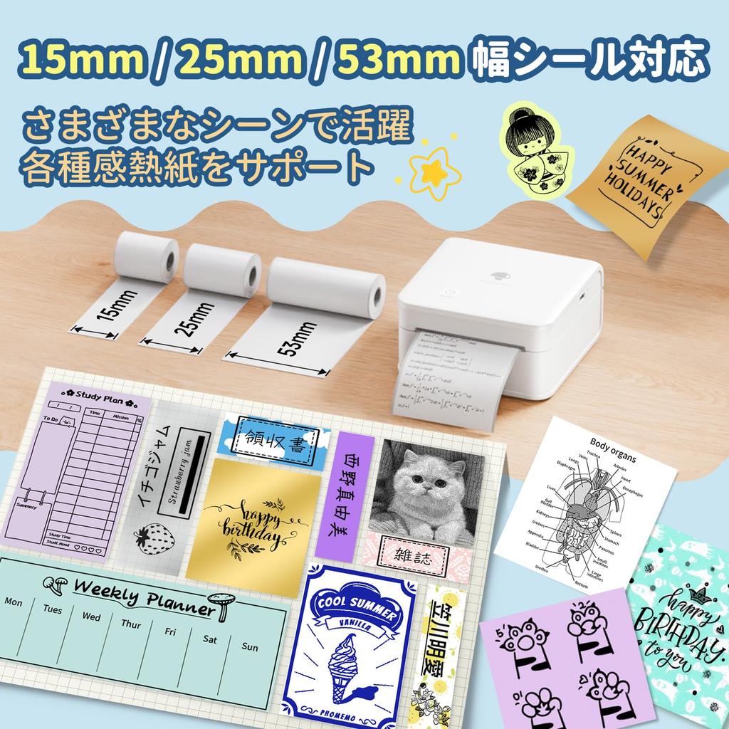 Лента для печати: Вы можете печатать не только на бумаге для печати шириной 53 мм, но и на ленте шириной 25 мм и 15 мм, которая удобна для организации и хранения.. Используя шаблоны этикеток, вы можете свободно выбирать шаблон в зависимости от местоположения и назначения.. Наслаждайтесь печатью на примерно 40 видах стильной термобумаги в рулонах