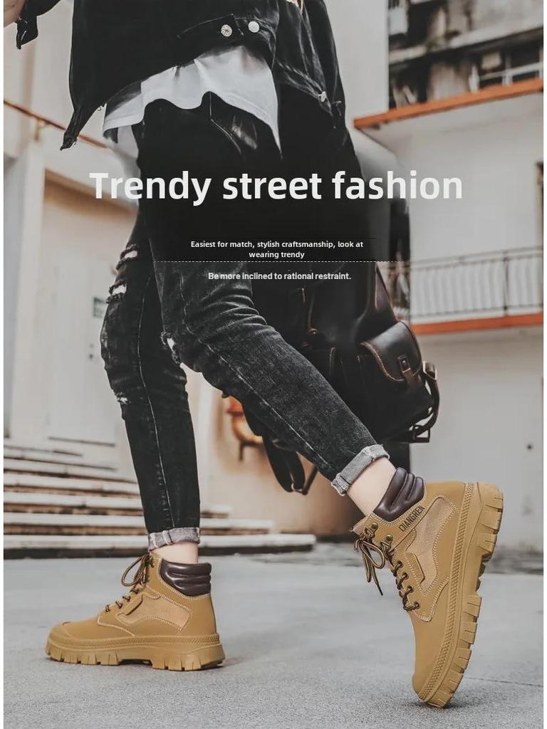 Мужские ретро-ботинки британской марки Martin 2024 года: Высокие, ударопрочные, модные рабочие туфли большого желтого цвета из натуральной кожи.