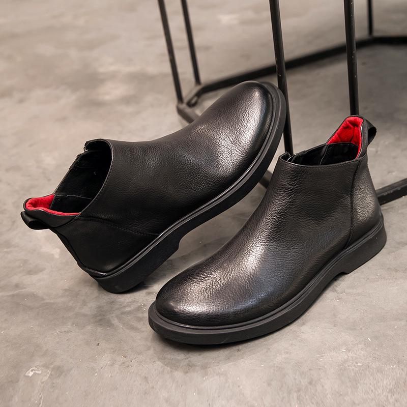 Мужские высокие ботинки Chelsea Martin: Британский стиль, для зимы, на бархатной подкладке, кожа.