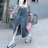 Разрез нерегулярный женский необработанный край винтажный повседневный средней длины с высокой талией А-силуэт пакет бедра юбка универсальная удобная модная джинсовая юбка-бюстье
