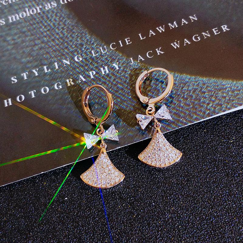 Маленькие серьги-юбочки для женщин, корейский темперамент, циркониевый бант, серьги-пуссеты, серьги-веера, серьги нового стиля