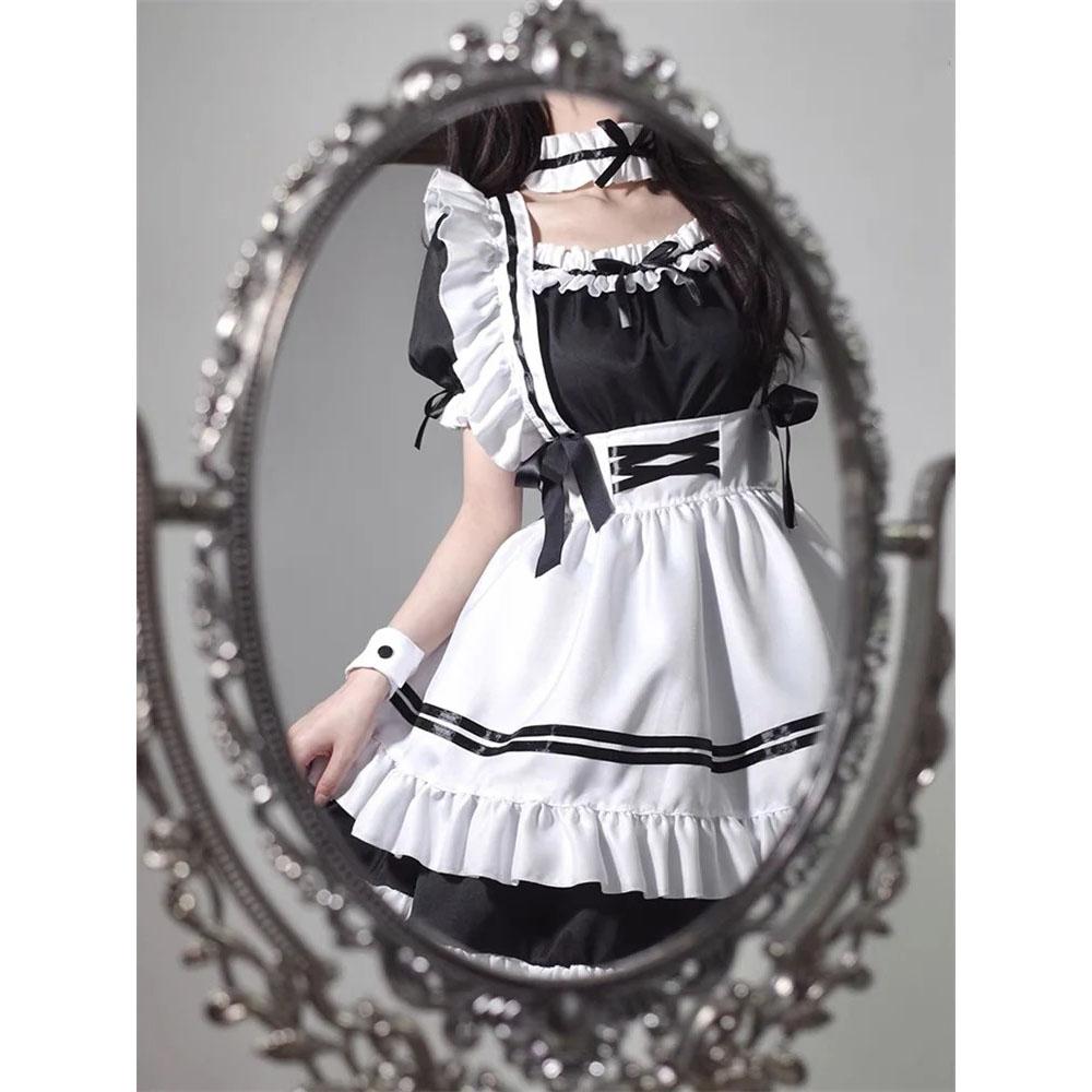 Женский костюм горничной Лолита Косплей Милый Сексуальный Эротический Кавайный Костюм для Кафе Черно-Белая Униформа Платье-фартук Милые Костюмы с Бантом