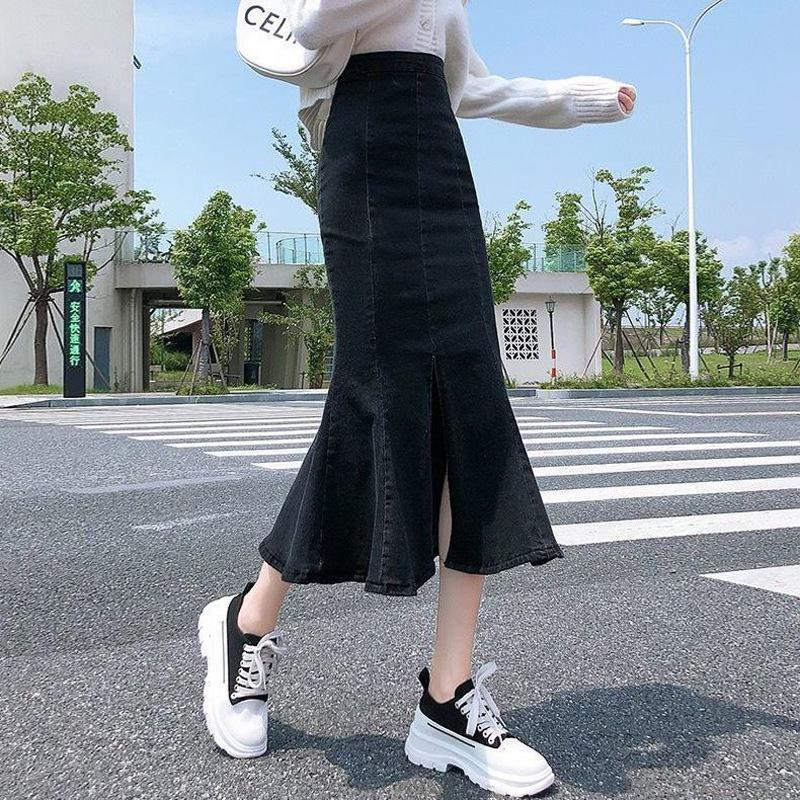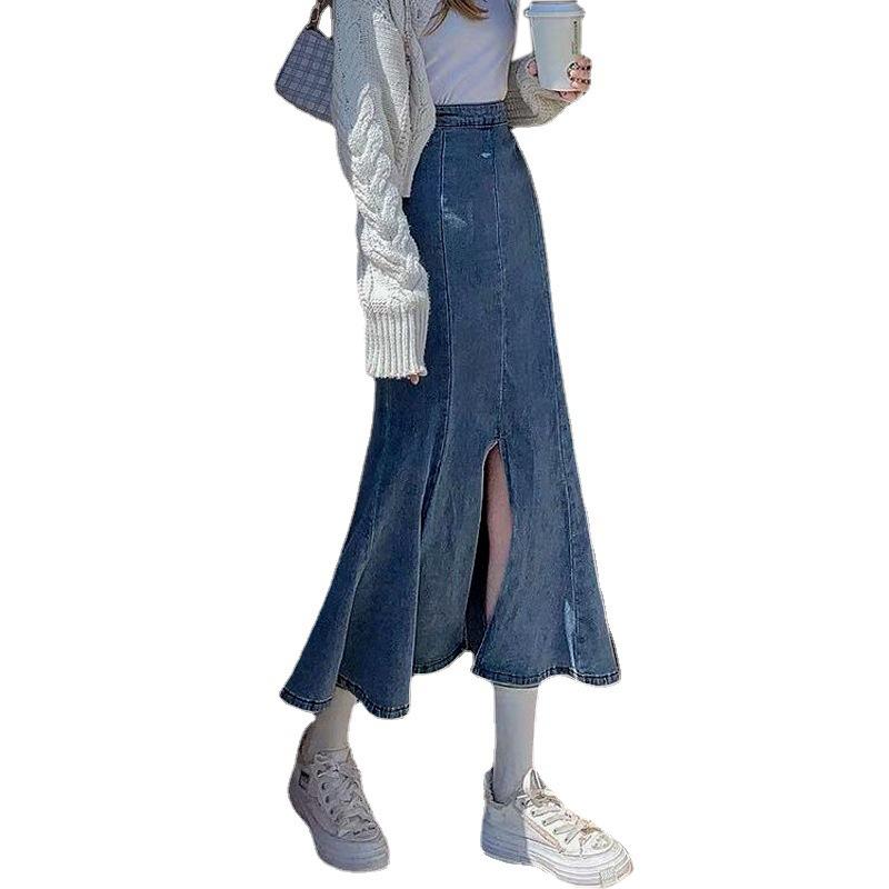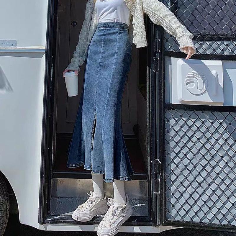 Юбка-бюстье с высокой талией и разрезом «рыбий хвост» Женская летняя эластичная юбка-бюстье A Word In The Long Section Package Hip Cowboy Женская джинсовая юбка-бюстье