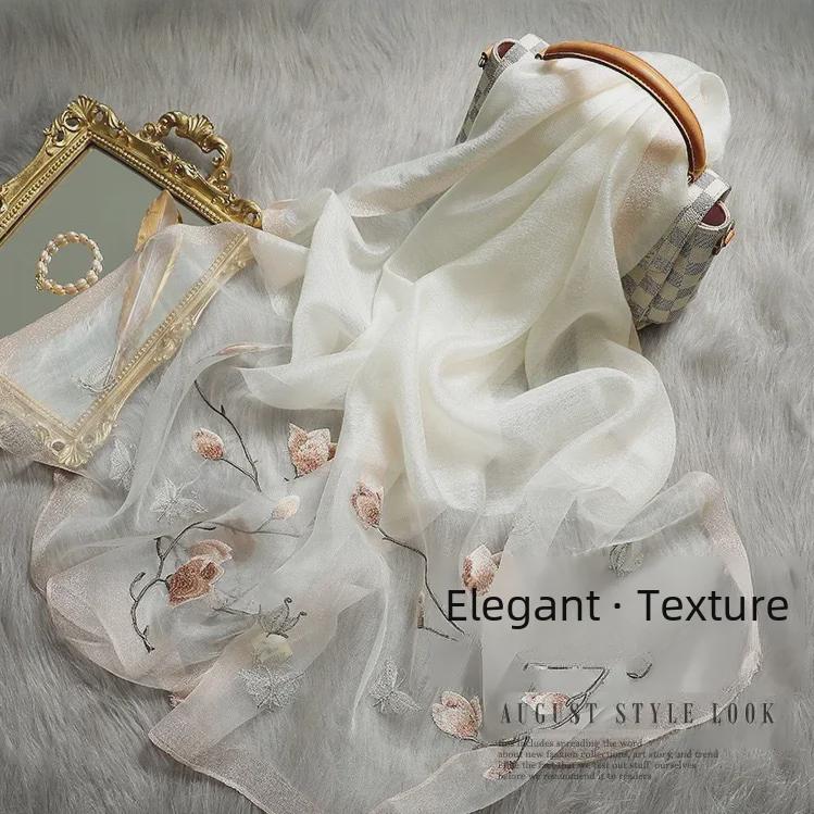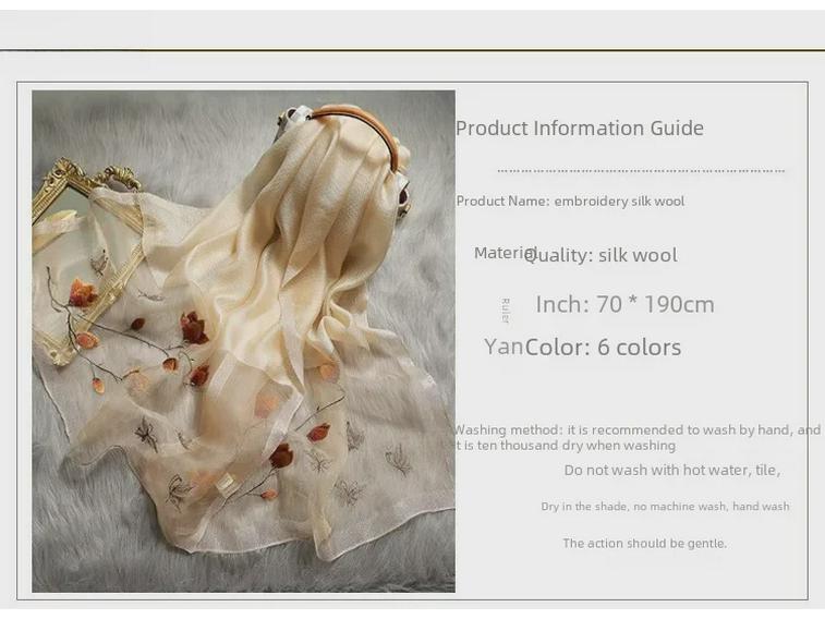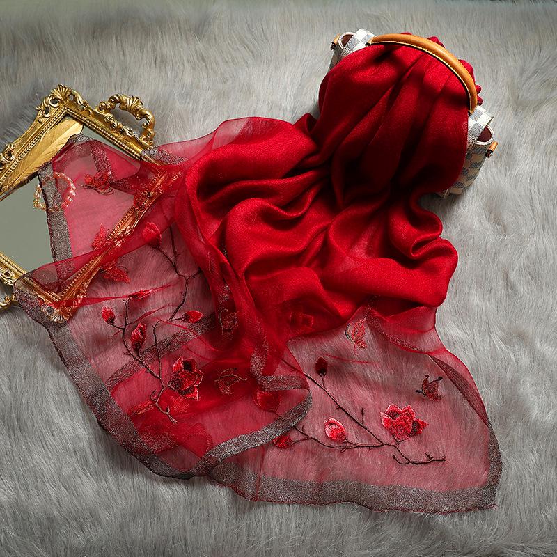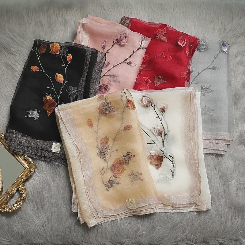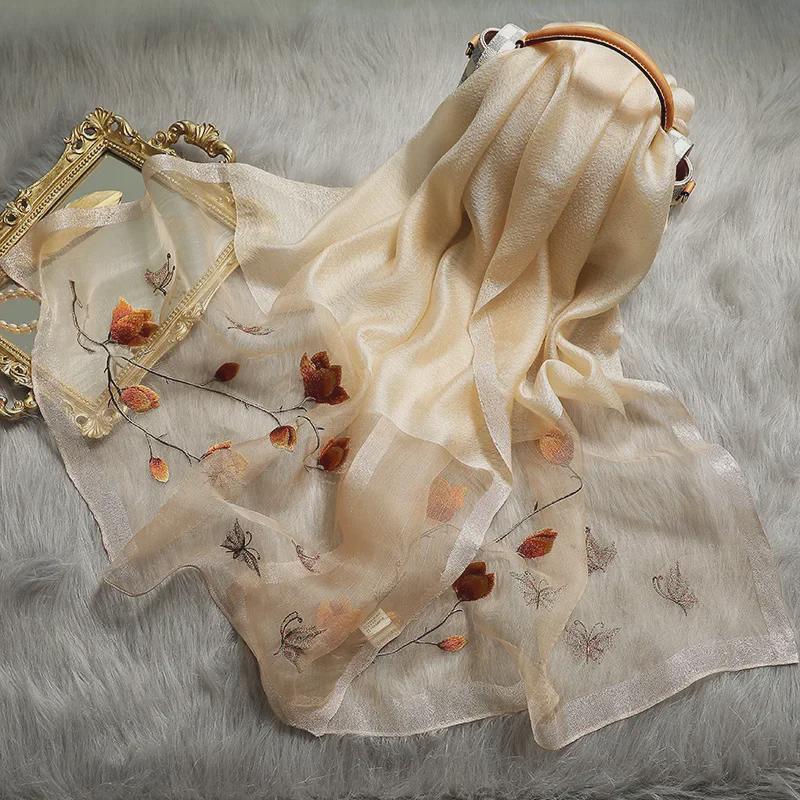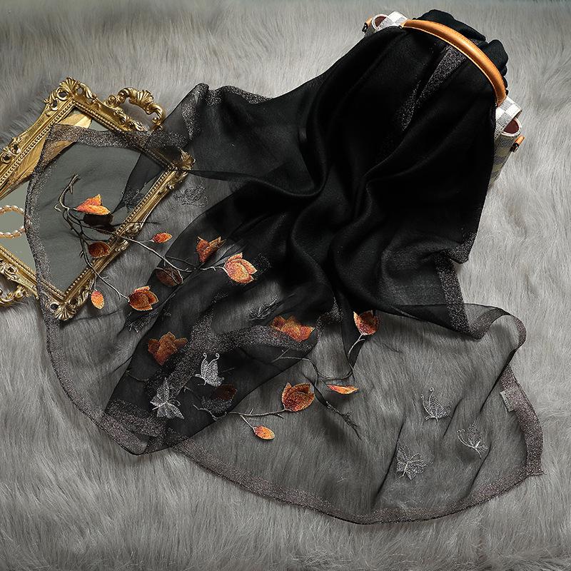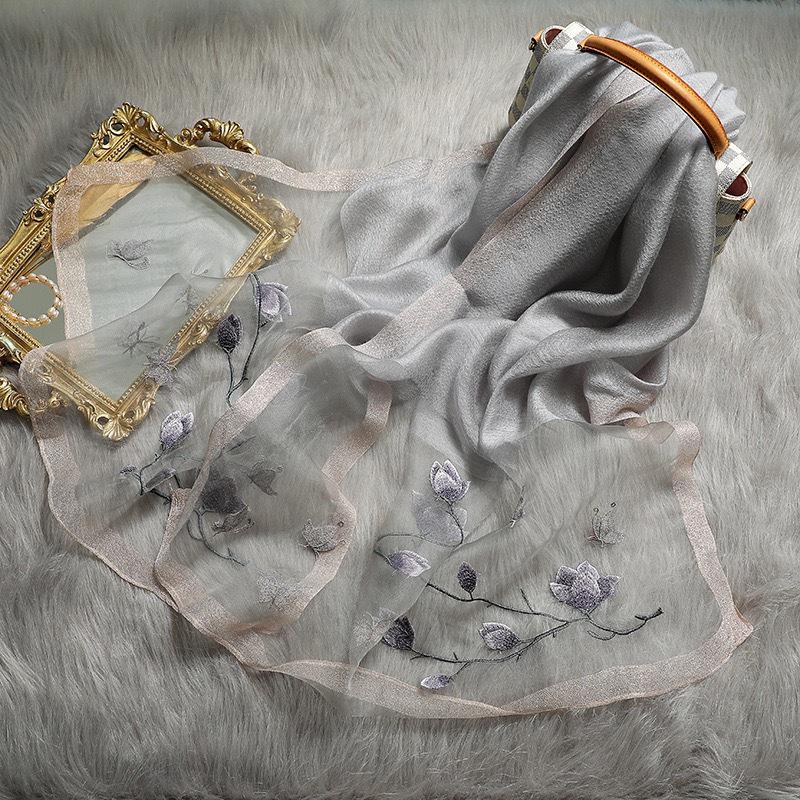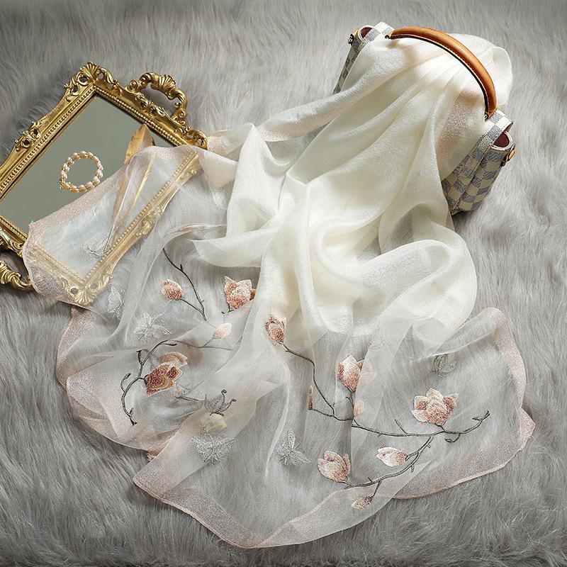 Женский шарф из шелковой шерсти с вышивкой: Солнцезащитная шаль из шелка Mulberry