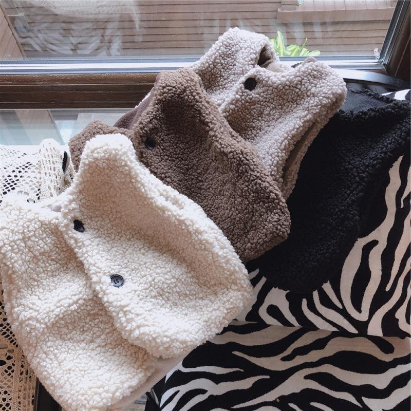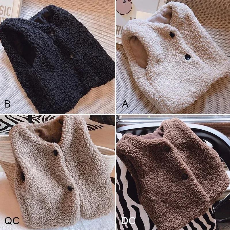 Осенне-зимний жилет из овечьей шерсти и бархата для девочек и мальчиков, плюшевый жилет, однобортный, с V-образным вырезом, детский, теплый, модный, теплый, пальто
