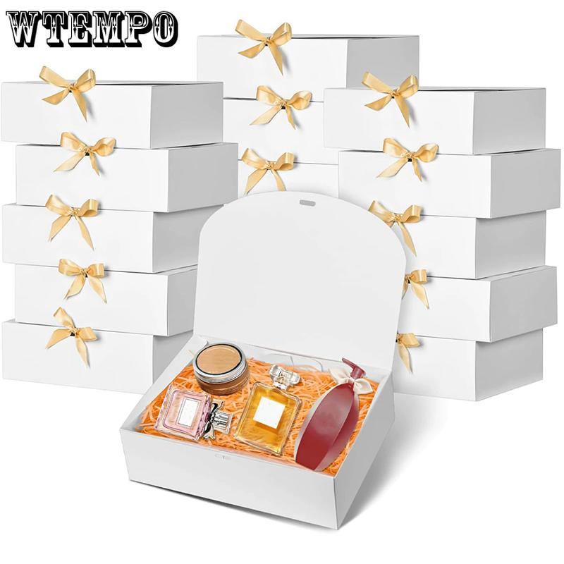 WTEMPO 10 шт. подарочных коробок из крафт-бумаги с бантом из ленты, многоцелевая упаковка для демонстрации ювелирных изделий, идеально подходящая для подарков подружкам невесты, свадебных сувениров